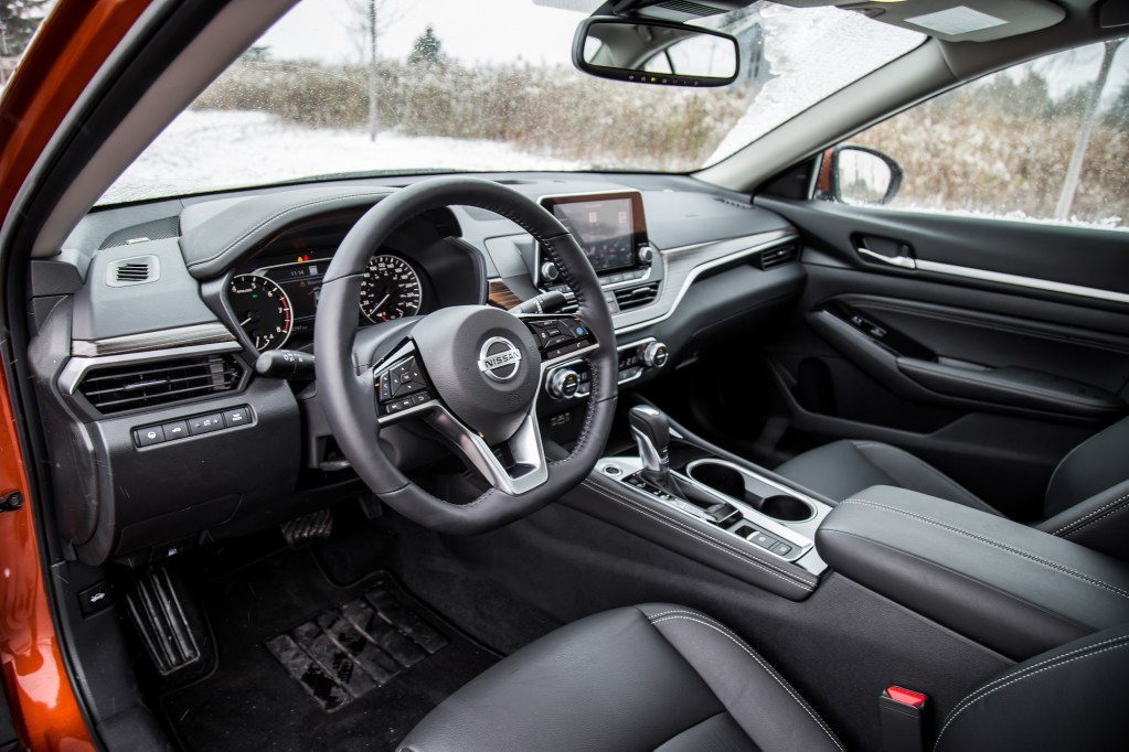 And with snow falling and vision dwindling, there felt like no better time to put the new Altima AWD to the test. The drive wasn’t as bland or as coarse as I expected. Nissan has expertly tuned their CVT to deliver meaty torque from the get go, and it doesn’t rev or scream unnecessarily like the harsh examples that preceded it, The 2.5-litre naturally aspirated inline-four engine is 80% new and feels perfectly suited to the car. With 182 hp and 178 lb-ft, this reactor is not too powerful but just enough for easy acceleration and moderately quick overtaking duties. There is no optional turbocharged engine like the Accord, so those who seek more power will have to look elsewhere. The Altima doesn’t drive as aggressively as it looks either, so don’t be fooled by that front grill. And dynamically, there isn’t enough agility or verve to make me want one over a Rogue or Qashqai.