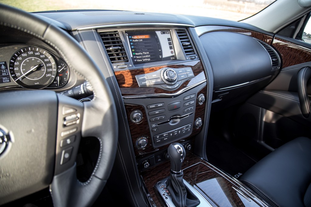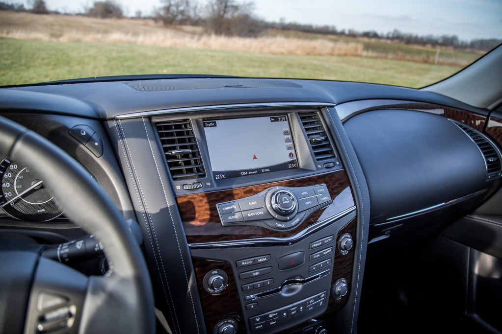 So where does the aging Armada fit in all of this? Therein lies the rub. The Armada has got a proper four-wheel drive system with an electronically controlled two-speed transfer case, and impressive towing capacity which remains at a leading 3,855 kg, or 8,500 lbs. It carries with itself undeniable off-road presence and has an army of cameras to mitigate difficulties in tight spaces. The seats are wide, plush, and comfortable for people of all sizes, the build quality is sturdy with impressive fit and finish, and there isn’t a single panel out of place. The ride is a typical truck-like experience: wallowy and bumpy, yet measured. The Armada does not handle undulations or corners like any of its lighter unibody competitors but it does exude a sense of confidence when going about town. While much thirstier and less fuel efficient – we averaged an appalling 18.4 L/100km on a mix of highway and city driving – the Armada’s massive V8 pays off by delivering a smooth and uninterrupted driving experience, but could use a turbocharger or two for its next-generation model. Acceleration from a halt is painfully slow, lacking that low-end thrust that you will find elsewhere. On a positive note, the velvety 7-speed gearbox shifts anonymously in the background and you will never notice it swapping cogs, further adding to its polished mojo.