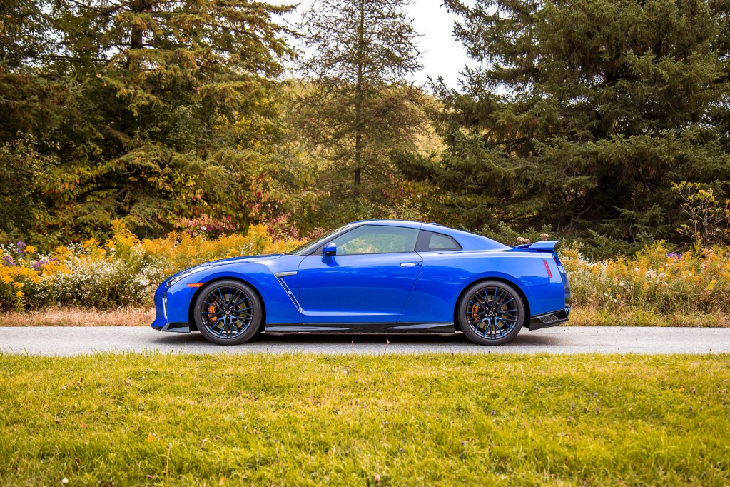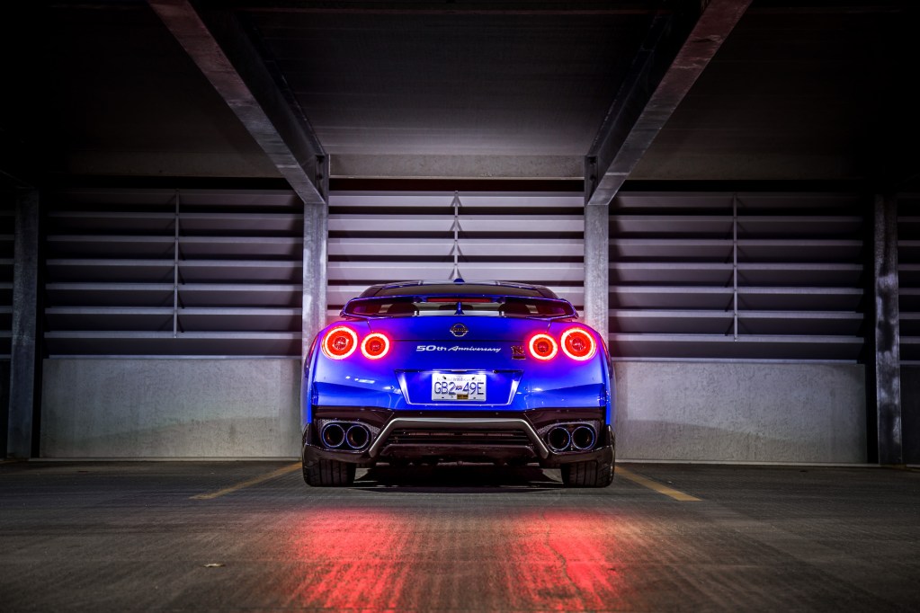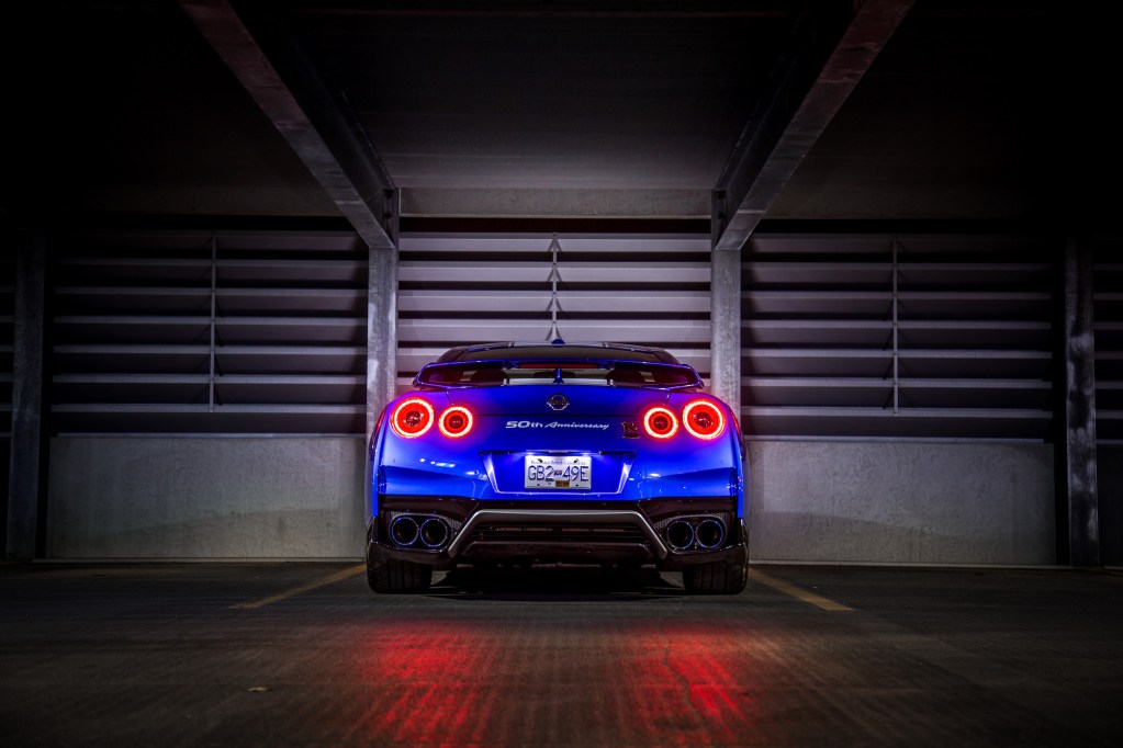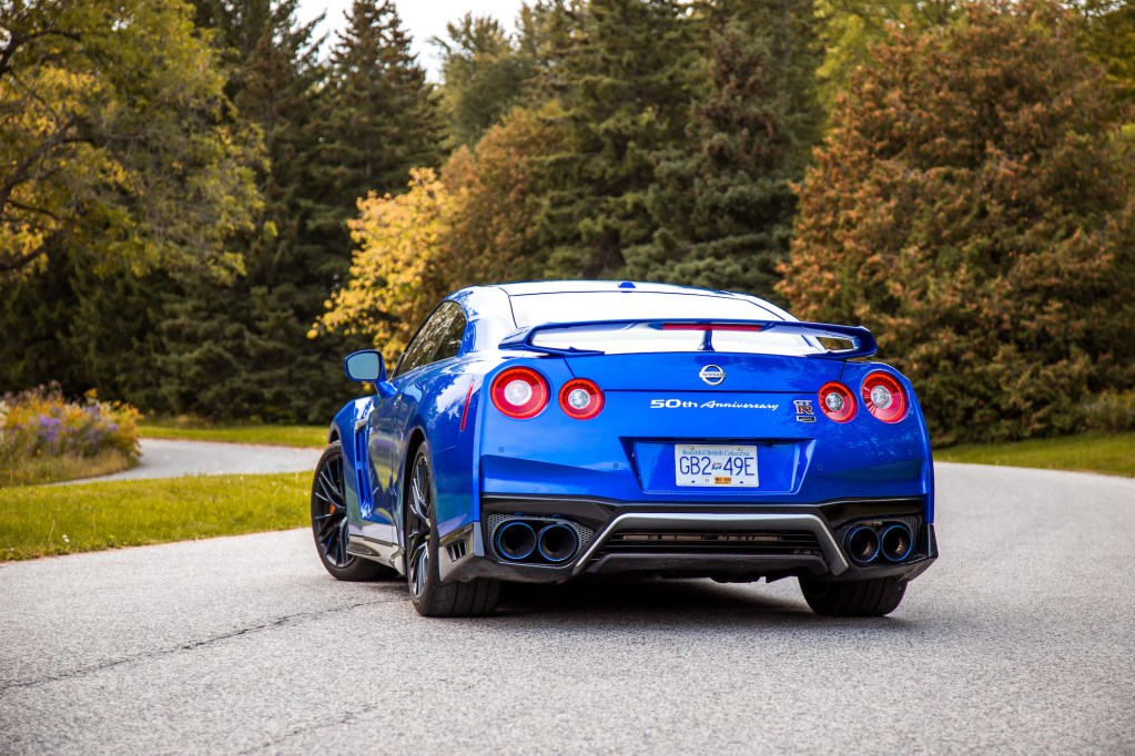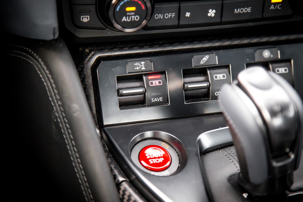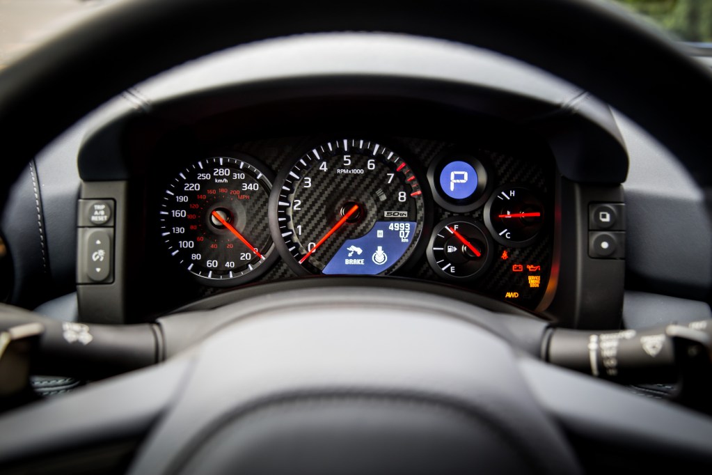 When parked next to its modern competitors, the GT-R’s interior begins to show its age, and that six-figure price tag may be a hard pill to swallow for those who consider interior atmosphere to be as imperative as driving performance. The new smokey gray interior leather is a neat touch but the 8-inch infotainment unit developed with Polyphony (makers of the Gran Turismo video game) is beginning to look dated. It’s also odd that the non-linear speedometer goes up in 20 km/h intervals until 100 km/h, then suddenly skips to 30 km/h intervals. Beautiful analog gauges, though. The seating position in the GT-R is quite high up, almost sedan height, which is off-putting for a sports car, but it also means getting in and out of the vehicle won’t trigger your osteoarthritic flare up. It’s got four seats too, though the back row is mainly for infants or adults under the 2nd percentile. Still, the fairly sizable trunk, cozy seats, and unhindered sightlines makes it easy to forget that this civil GT-R eats supercars for breakfast.