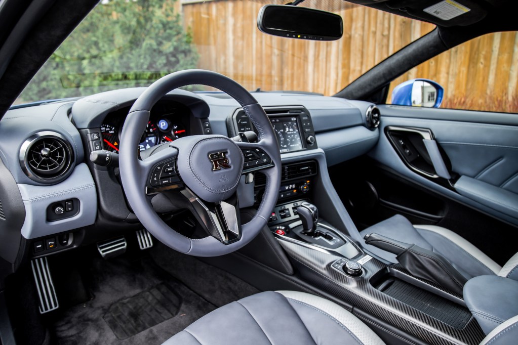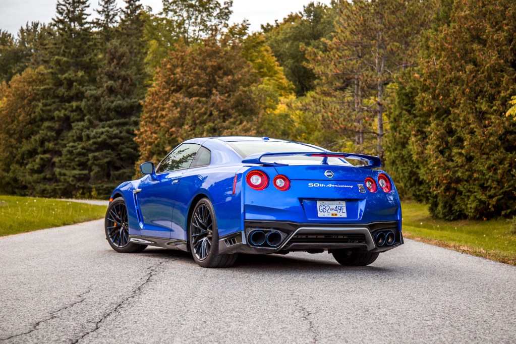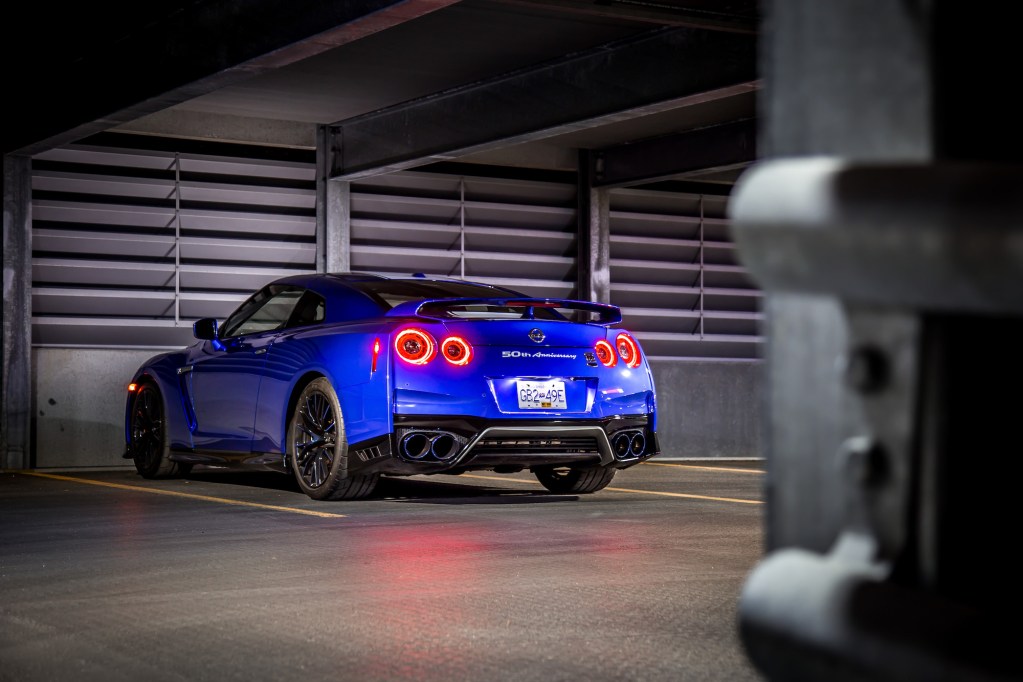 It’s been half a century since the original GT-R graced the shores of Japan, and five generations later, we have the R35 GT-R singing its swan song with the 50th Anniversary Edition. Celebrating its storied history, this limited edition model commands $9,000 over the base Premium model ($129,998), and costs $138,998. That gets you a choice of three two-tone paint combinations, meant to represent the GT-R’s liveries from the Japan GP series: Bayside Blue (with white stripes and blue wheel spokes), Super Silver (with white stripes), and Pearl White (with red stripes). Furthermore, you will find a 50th Anniversary badge neatly embedded onto the center console, tachometer, trunk lid, and front seats. Inside, the interior is wrapped with hand-stitched semi-aniline leather in a new smoky gray colour that shimmers with a tint of blue. That exclusive-colour leather also makes its way onto the steering wheel and shift knob, with beige stitching on the Alcantara headliner as well.