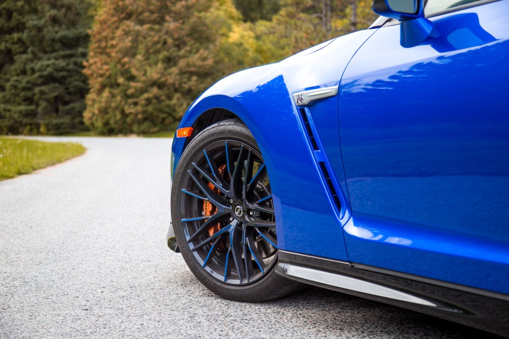 While the 50th Anniversary Edition is an aesthetics-only package, it joins the subtle yet meaningful updates for the 2020 GT-R lineup, including new turbochargers that produce less turbo lag and offer sharper low-rpm response, a new titanium muffler and exhaust with burnished blue tips, and a new 20-inch wheel design wrapped in the familiar Dunlop SP Sport MAXX GT 600 rubber. Power remains the same at 565 hp and 467 lb-ft, though Nissan says they have reconfigured the “R” driving mode for even more aggressive shifts. Slight revisions have also been made to the steering and suspension for a more cohesive and responsive personality.