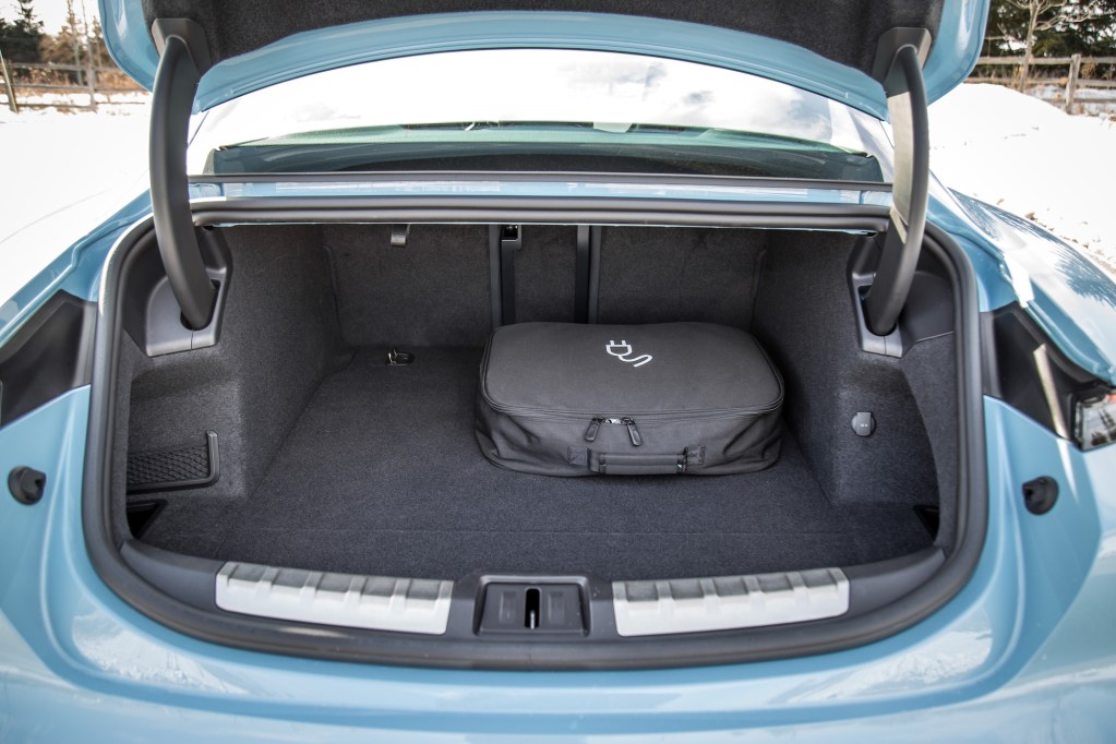 Range? EPA says the 4S will go 320 km while the Performance Battery Plus will reach 365 km. We averaged just about 280 km with the bigger battery, but this was in -8C weather with all the heaters on. But the trick up the Taycan’s sleeve is a 800-volt power supply that is double the voltage of what EV cars typically use. This means faster acceleration and charging times, taking the 93.4 kWh battery from a 5-80% charge in 22.5 minutes, or 100 km in 5 minutes, when using a power supply outputting 270 kW. The catch? These 270 kW-350 kW high-powered charging stations are few and far in between, meaning you will have to settle for less powerful outlets in the range of 50-150 kW instead.