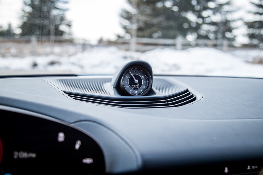 While Porsche tradition dictates a large tachometer sitting front and center of the instrument cluster, we have a curved 16.3-inch digital screen instead. Like its analog counterparts, there are five digital dials but the steering wheel effectively blocks the outer two, rendering their usefulness and convenience moot. While the screen is adjustable, Porsche actually limits what you can see in each dial, unlike Cadillac that pretty much lets you mix and match until your heart’s content.
