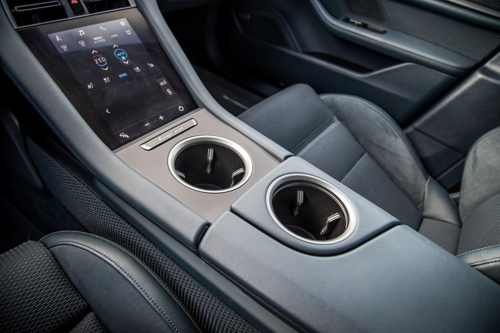 The same goes for the snazzy interior, which is the same as the Turbos but with standard 8-way adjustable, partial leather seats instead. The sheer amount of digital real estate in here cannot be understated. We’re talking about four large screens, including the optional passenger display. With it, the passenger can control all the media and vehicle settings and not have to fuss around in the center console. If only it could play movies.