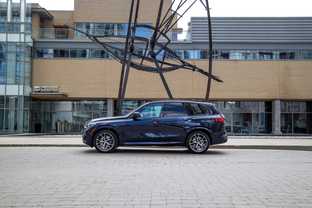 It’s not our first encounter with an X5 PHEV, but this 2021 model gains a larger battery that allows for 45 km of zero-emission driving – wait, is that why it’s called the 45e? Visually, the X5 PHEV is nearly indistinguishable from its gasoline-only variants besides the obvious badging and charging port. Loaded up with the M Sport body kit, blacked out exterior accents, and a stunning shade of Tanzanite Blue, and it’s one of the most balanced and handsome looking mid-size SUVs currently on sale.