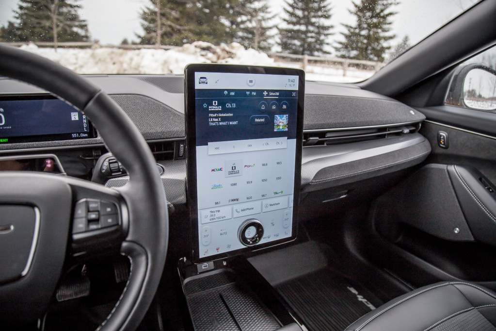 So is the tragic dip in range worth the performance? Not really. The biggest difference with the GT trim is its superior low-end thrust, and the almost violent acceleration when you stab the throttle. It’s far from theatrical especially without any real exhaust noise stimulating the ear drums, but there is so much instant kick that the GT’s significant curb weight is nearly rendered moot. Mid- and high-speed acceleration isn’t bad but the urgency and potency of acceleration seems to drop off a cliff once you get past 100 km/h. You have to remember that though the spec sheet says 634 lb-ft of torque, it’s spread out quite differently throughout the powerband than a combustion engine that huffs and puffs atmospheric air. We couldn’t help but think how much faster it would be if it lost a few pounds. Hilariously enough, underneath the digital speedometer reading it says ‘Ground Speed’, which did tempt us to get some air time with the Mach-E to see if its internal programming would cheekily switch it to ‘Air Speed’. We were disappointed.