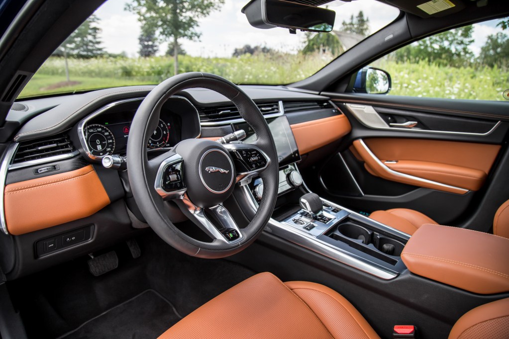 Chances are you will be seeing plenty more F-Paces on the road than XF Sedans. SUVs are just more popular with the masses, and the XF model line up clearly reflects that. There is only one trim available: XF R-Dynamic P300 AWD. That means a 296-hp, 2.0-litre turbo-four engine is all that’s available, mated to a smooth shifting 8-speed automatic, all-wheel drive, and a 0-100 km/h time of 6.1 seconds. There’s no V6 and no plug-in hybrid available, but that may have been a smart move for Jaguar, diverting their resources to their heavy hitters rather than their low-volume offerings. At least they still offer a sedan. And while the XF has always been objectively inferior to the BMW 5 Series, Audi A6, and Mercedes E-Class, it’s still an overwhelmingly charming alternative for those seeking something outside the box of bratwursts.