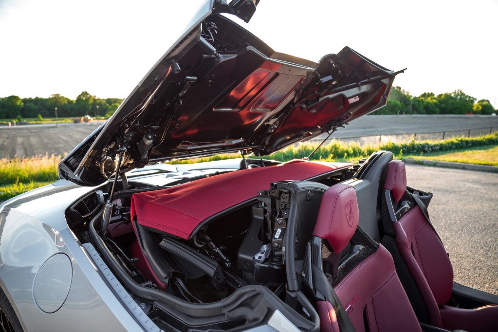The Spyder’s dynamic penalties are few, at least outside a racetrack. There are noticeably more rattles when negotiating broken pavement, and the occasional chassis stutter as the front wheels wander around, but hardly enough for the casual driver to notice. It’s not a stiff carbon tub chassis like the McLaren 570S Spider but if you ask me, the tradeoff for wind, sun, and unfiltered noise is worth the dip in dynamic acuity.