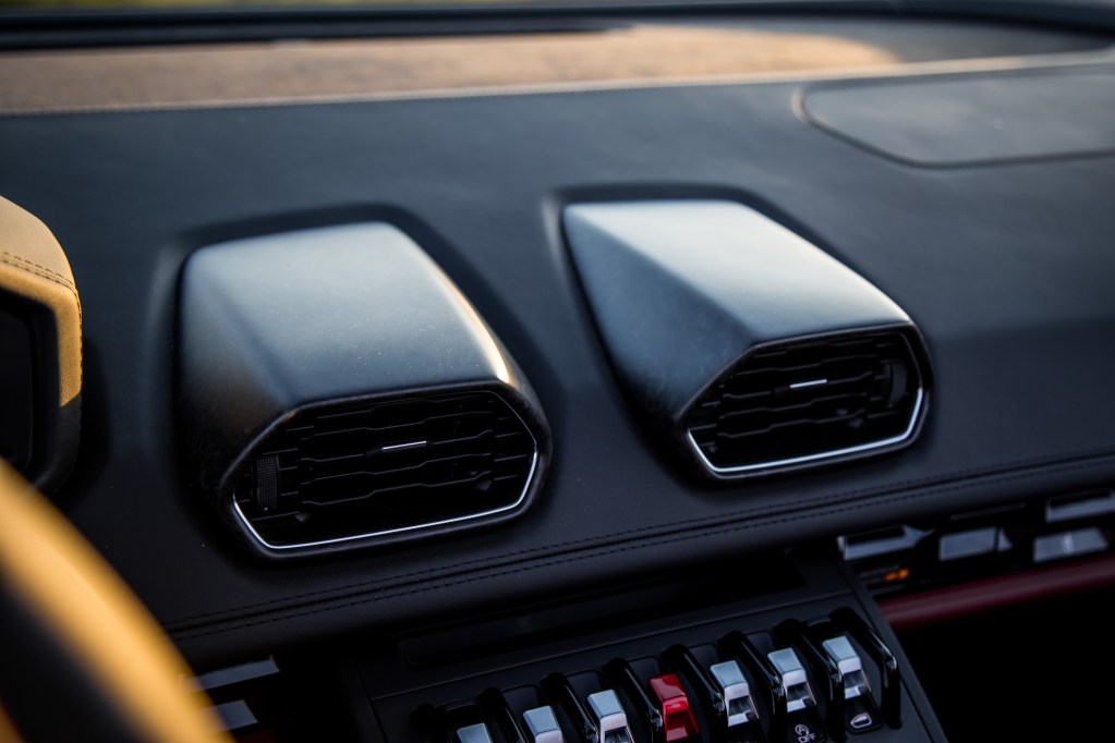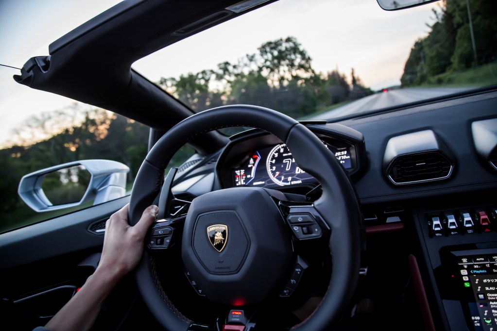 There’s hardly 800 kilometres on the odometer and the meaty 20-inch Pirellis reek of fresh rubber. Good roads that demand courage are few and far in between around my area, and there’s hardly enough space (and run off) to effectively open the corks of the V10. Exploring this Italian’s limits is futile outside of a racetrack but even at low speeds, there’s a sense of purity when you rotate the wheel and stretch the Huracán’s vocal cords with your right foot. The Huracán EVO RWD Spyder uses the same 5.2-litre naturally aspirated V10 as the Coupe, and with an eye-watering 602 hp and 413 lb-ft of torque on tap, acceleration is instant and downright violent past half throttle, charging forward as if all it sees is red in the distance. Like high school physics class, air resistance is negligible, and drag never shows its hand until you roll down the windows and let air turbulence rummage through your hair.