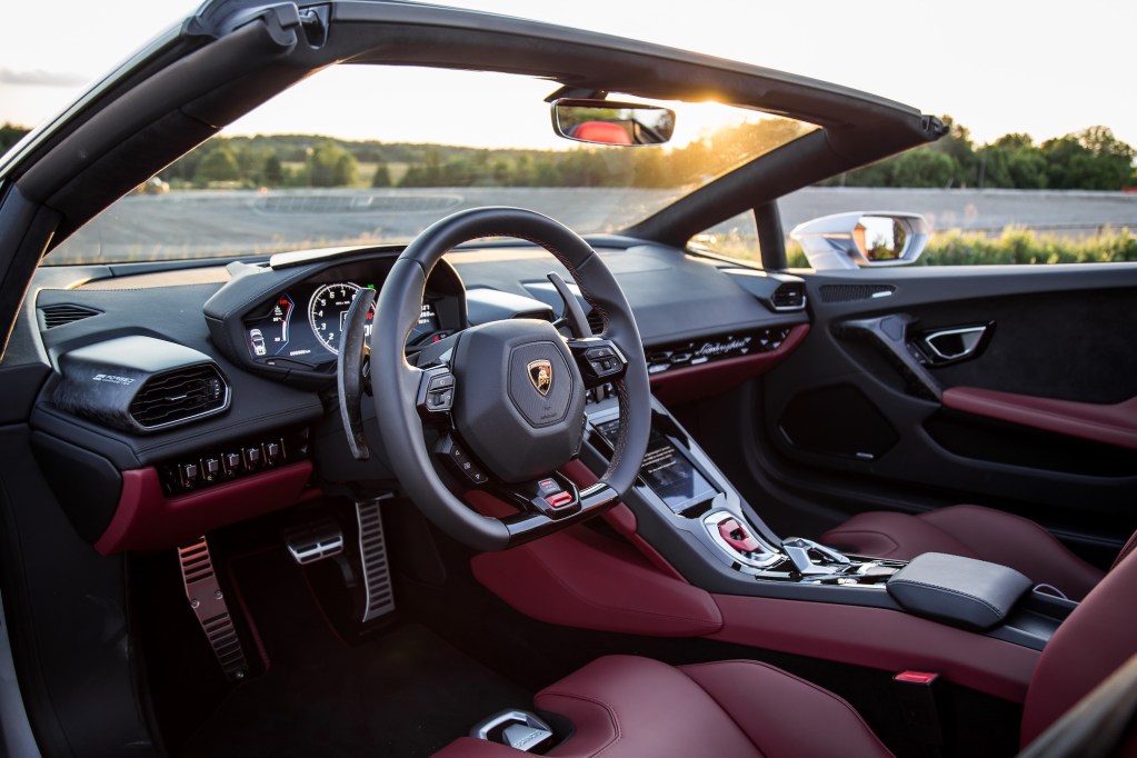 There is an optional cup holder that extends out of the dashboard but its base is incredibly shallow and isn’t the most trustworthy companion to keep hot cups of coffee from ruining the smooth Italian leather. Ingress and egress is tricky due to the Huracán’s low door portals, but then again, what did we really expect from a supercar? Wind buffeting with the roof and windows down is quite poor, but that is quickly remedied by keeping the windows up, resulting in a quite impressively hushed cabin.
