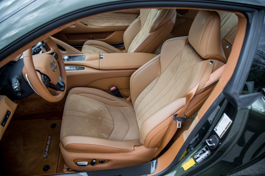 And one look at this tasteful example of Nori Green paint matched with a Toasted Caramel interior will have you falling in love (and hungry for caramel). Nori is a dried, edible form of seaweed, and it looks exactly like the sushi roll I had for dinner last night. The shade of green artistically mellows down the LC’s futuristic, almost space-ship vibes. The looks haven’t changed or morphed since we drove it back in 2018, but that’s a good thing. The silhouette is well proportioned, draws attention faster than a maskless shopper, and looks significantly more expensive than it really is.