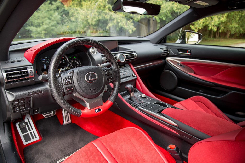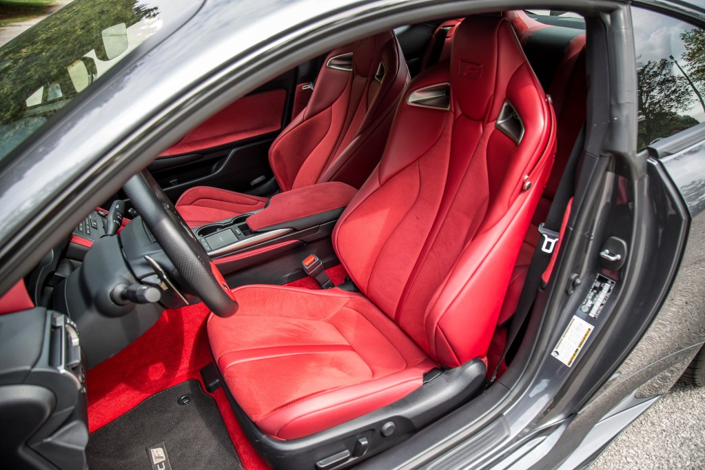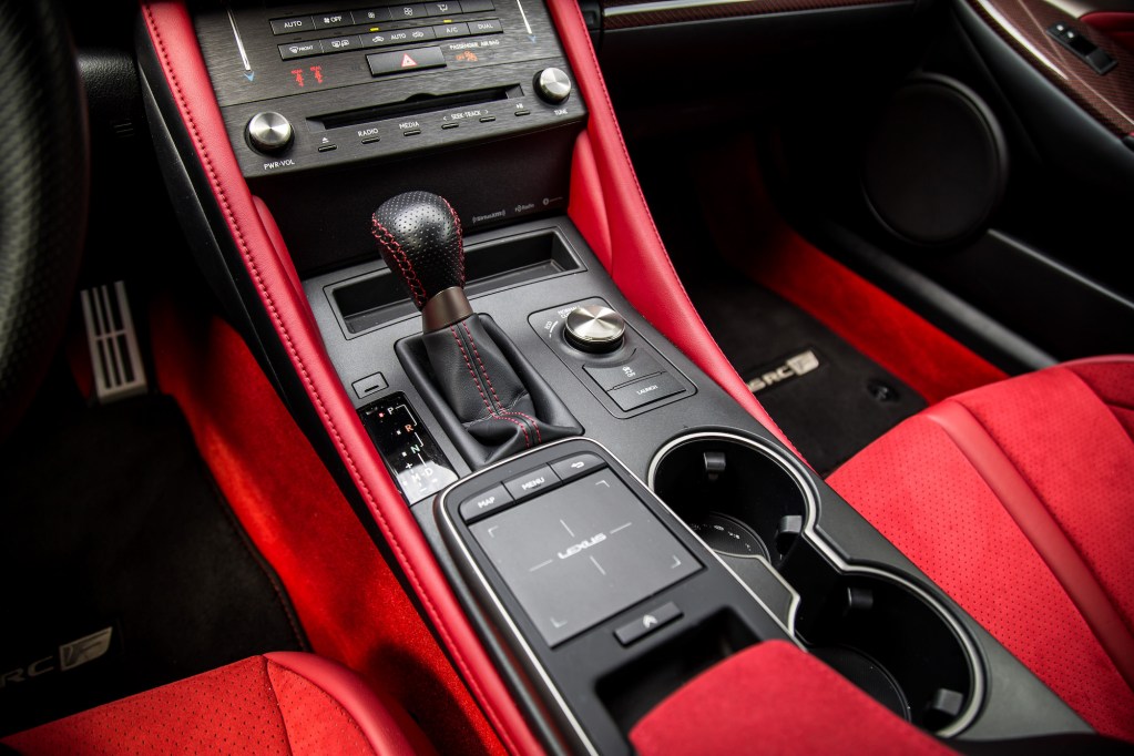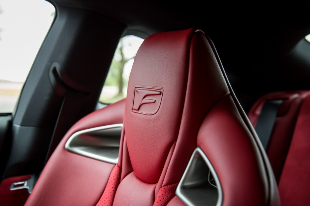 But the colour scheme does little to liven up the aging interior. The layout is tight, cramped, heavily reliant on buttons and dials, and there’s barely any room to store your phone and small items aside from the two cupholders in the center. We won’t dive into our frustrations with the trackpad system as you can read about that in our other Lexus reviews, but at least the seats are mighty supportive for that trip down to the track.
