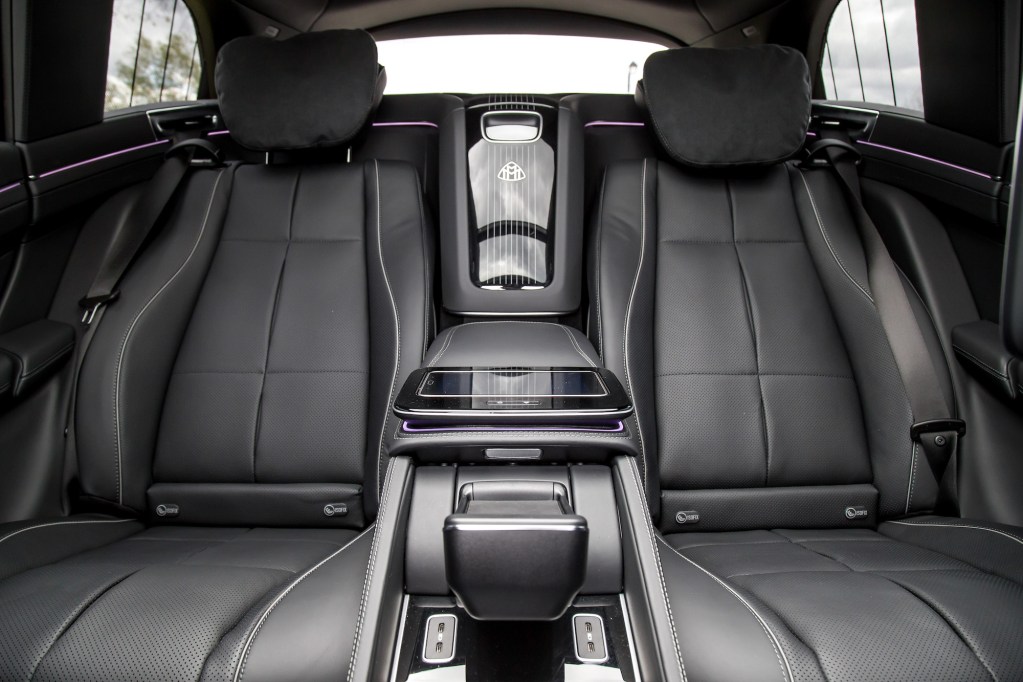 Other little nifty Maybach additions include the beautiful pinstripes that line the dashboard and cleverly match up with the lines up on the fan vents. Extendable running boards made from high-gloss aluminum deploy whenever you unlock the vehicle or touch the door handles. While the doors don’t open and close themselves like a Rolls-Royce, they are soft-close, and come with electronically-operated sunshades.