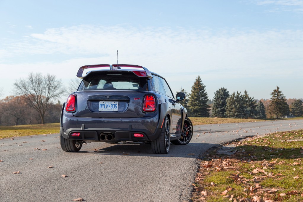 I honestly expected the exhaust to be louder. The GP’s vocal chords are a bit muffled, and are lacking some mid-range bass and top-end sharpness. Be that as it may, ripping the GP at wide open throttle is like having a dozen angry wasps buzzing behind your ear. It’s sharper in tone than an Alfa Romeo 4C, but not as sonically piercing and rewarding as a CLA 45 AMG. Miles better than a comparatively subdued Civic Type R and Golf R, though. Unlike the standard JCW, there are none of those excessive pops and gurgles on overrun, and it doesn’t drone that much at highway speeds, but it definitely sounds constrained, and I suspect that’s due to Euro-spec emission regulations and particulate filters now added onto European made vehicles. The GP could be a victim of that, though I couldn’t verify with MINI whether or not our Canadian-spec vehicles have them installed. It’s still not a bad noise, and you can have a listen to our Exhaust Notes video of the GP to hear it for yourself.