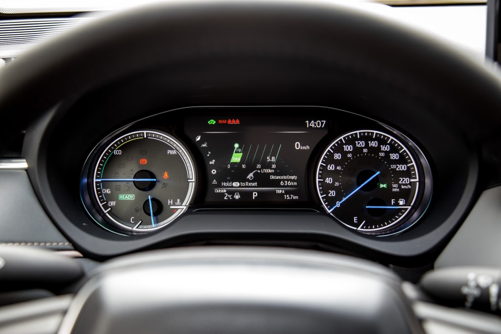 As with all Toyota hybrids, we averaged exceptional fuel economy numbers, with a mix of both highway and city driving giving us 6.9 L/100km. That’s very impressive for such a large five-passenger vehicle. While you can’t plug it into your household socket, its regenerative battery works in tandem with the gasoline motor to deliver a fuel-efficient drive. There’s even a selectable EV mode above the gear shifter, allowing you to drive in electric-only mode, but it automatically shuts off once you go past 30 km/h, and it’s only available for short distances. It’s quite useless if you ask me, but it has been installed on every Toyota hybrid for the past few years. The only time I found it useful was when browsing around the parking lot or when waiting in line via a drive-thru, but you tend to be too distracted to remember to hit the EV button anyways.
