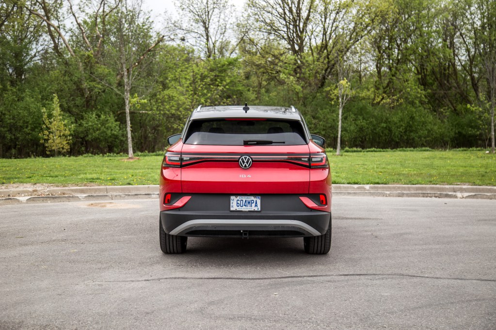 From some angles, the ID.4 appears like a concept car that’s just rolled off the showroom floor. In others, it’s like a shrunken down VW bus, and stands out from the blander and more homogenous EV designs without front grills and exhaust pipes, especially in this King’s Red Metallic paint.