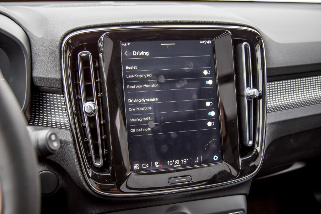 The XC40 Recharge offers one-pedal driving with a strong regenerative braking feature. It’s selectable via the menu screens, and there are really only two settings: on and off. When off, the XC40 will glide with little rolling resistance and lose coasting speed at a very minimal rate. When it’s on, the heavy deceleration on throttle lift is strong, but modulate it carefully and it becomes very easy to one-pedal drive it.