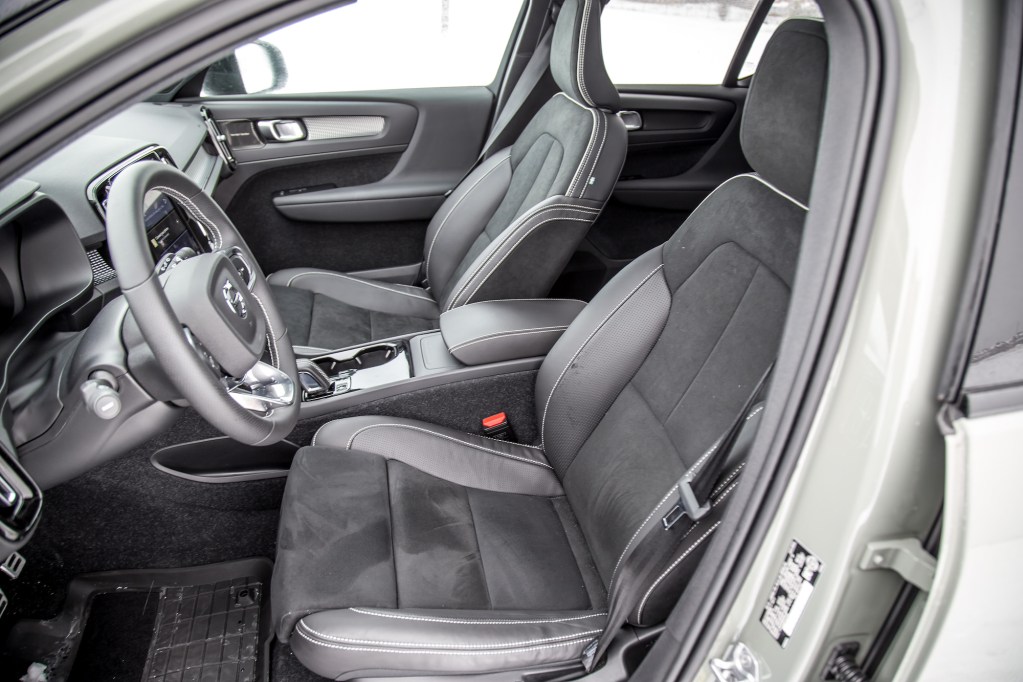 The ride is not harsh but the XC40 seems to hug every bump and undulation on the road, forcing the springs to oscillate more than a luxury SUV should, and its substantial weight exacerbates that lofty feeling. Still, we enjoyed the XC40’s all-weather traction and surefootedness as we soldiered through snowy and slushy conditions. With the battery mounted low to the floor and integrated into the center tunnel, the low center of gravity lends it some athleticism around corners, and there’s a willingness to rotate that we didn’t find with the standard XC40.