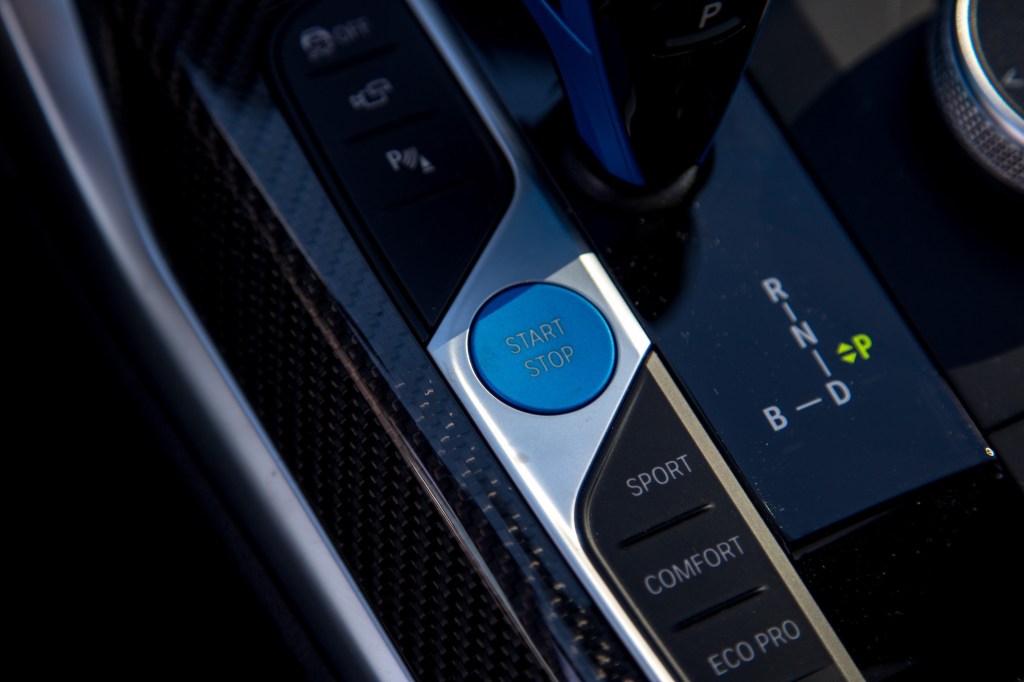 Inside the i4 is standard BMW fare except for the unique blue-trimmed elements around the steering wheel logo, gear shifter, and start button, reminding you that this BMW doesn’t burn fuel. Those wishing for the snazziest, fanciest, and most theatrical of cabin designs will be left disappointed. BMW has instead stuck with their tried and true formula of hard buttons and dials, and a rotary dial to control the infotainment. Function over form, and we would take this ergonomically sound arrangement over any of those fingerprint-laden touchscreens that seem to plague every other EV these days.