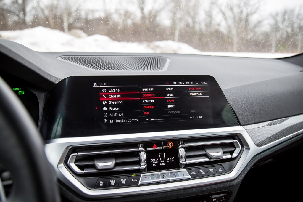 Even in the snowy conditions we found ourselves in, the M4 Competition xDrive never skipped a beat, we hardly ever saw the traction light come on, and there was an overcasting feeling of, well, overconfidence. We didn’t have to be gentle with the throttle, we did not have to baby the brake pedal when the front tires weren’t pointing straight, and matting the gas in a high-speed second-gear right hander didn’t even have us breaking a sweat. Every time we tried to coax the rear end to slip out with a generous dose of throttle and wheel rotation, the M4 would grip up immediately, tenaciously anchor its output to the ground, and make us look like driving heroes.