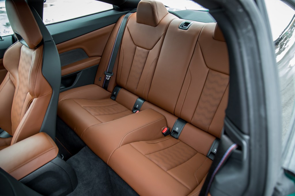 Actual dials and buttons complement the rotary dial and 10.25-inch center touchscreen. A fully digital 12.3-inch instrument panel sits in front of the driver but it’s a convoluted mess of fonts and nonlinear shapes that makes deciphering the displayed information a chore. We’ve tried the carbon bucket seats before with the schlong holder as we like to call it, but we find these sport seats much more comfortable and welcoming towards a wider spectrum of body sizes. The rear seats are still cramped despite its improved legroom over the outgoing M4, but my six-foot slender frame honestly wouldn’t mind the short journey to and from the grocery store.