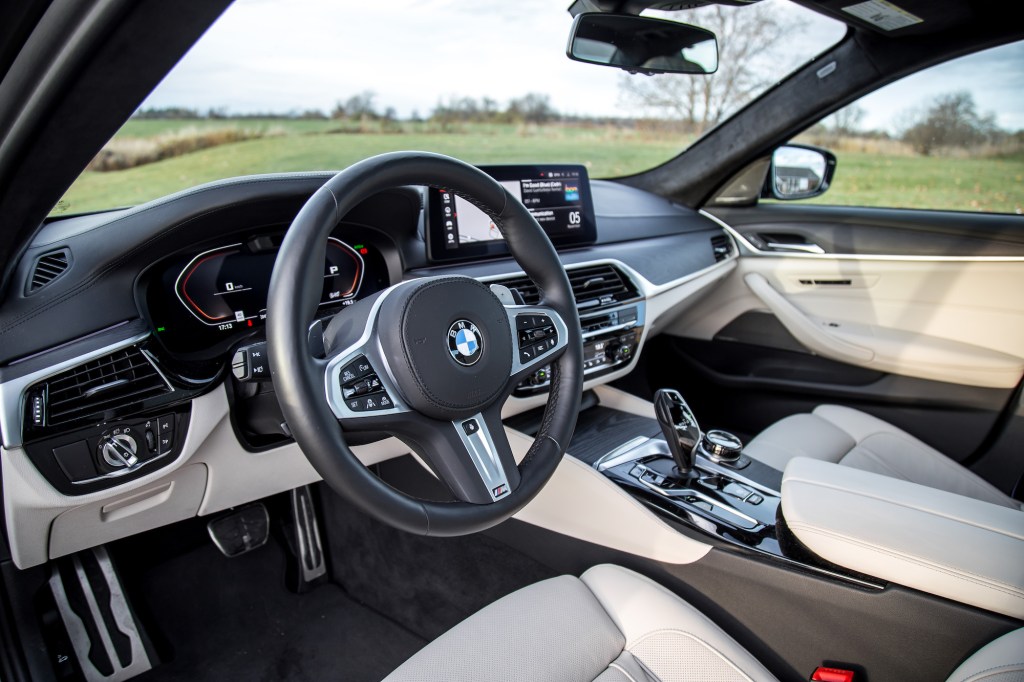 Inside, the 2022 M550i still uses the older center console layout and switchgear but we actually prefer it over the newer and thinner examples in the 3 and 4 Series. The knobs and rotary dial here in the M550i feel much more substantial in size and weight, which means there is less ambiguity when you depress the switchgear. The button resistance is much more affirmative so there isn’t any guesswork if it acknowledged your input or not – we have this issue with the newer models.