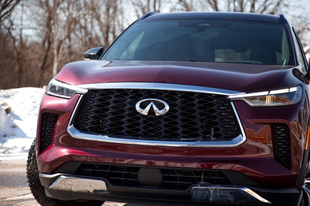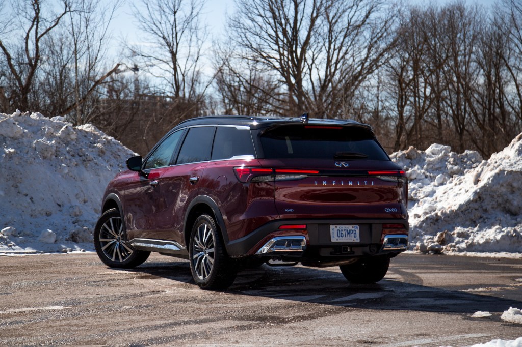 The spec you see in our photographs is what Infiniti calls 2-Tone Bordeaux Red with Obsidian Black. While calling it a two-tone paint is a bit of a stretch as the second tone is only available in black and is only painted above the shoulder line, it does effectively shrink down the QX60’s overall silhouette.