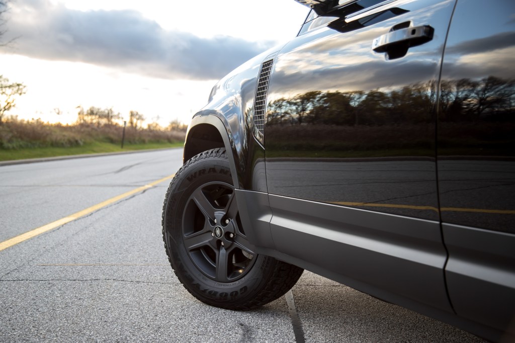 When it comes to road comfort, the P300 rides just as well as the P400 – ours was loaded with the optional air suspension ($1,620) so that’s not a surprise. But the smaller engine has made the front end lighter and more agile. It’s more manageable and eager to turn, and doesn’t feel as cumbersome when wrestling the wheel. There’s polish in its movements, suppleness in the way it graces undulations, and a skilled gearbox to harmonize it all together. Forgoing the live axles drastically improved its road manners and as a result, the Defender is exceptionally comfortable. It’s a bit rougher around the edges than the Range Rover when negotiating pockmarked roads, but compared to a Jeep Wrangler or Gladiator, it is like riding on a magic carpet. Looks mega in Santorini Black too.