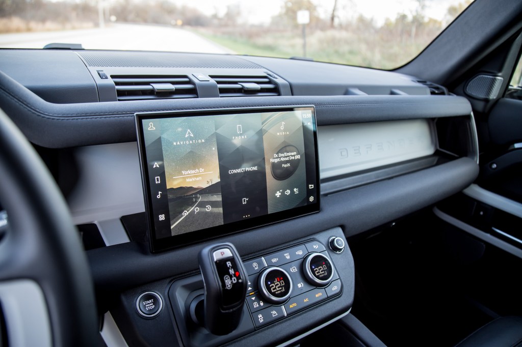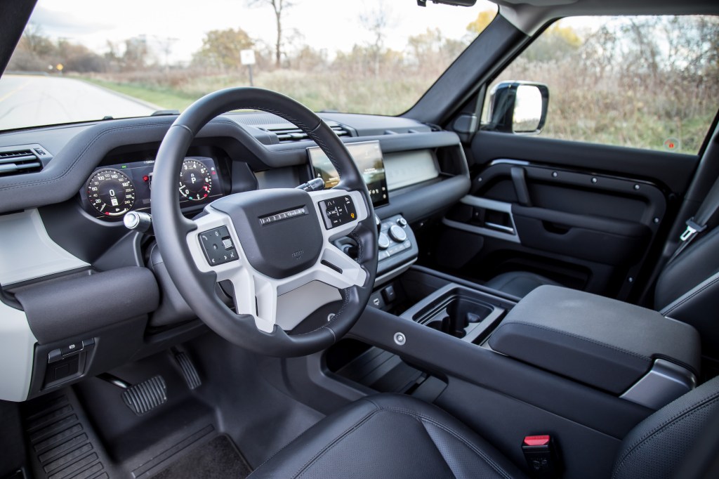 The P300 badge denotes the smaller engine and output. Instead of a beefy six-cylinder (P400), it’s equipped with a petite 2.0-litre turbocharged four-cylinder that puts out 296 hp and 295 lb-ft of torque. That’s a 99 hp and 111 lb-ft deficit to the P400. Yes, the it weighs 221 kg less, but it also takes much longer to accelerate from 0-100 km/h, 7.4 seconds compared to the P400’s 6.1 seconds. Its entrance price is much lower though, starting at just $65,500, making it a clear alternative to a BMW X5 and Audi Q7 for those cross-shopping with premium SUVs. But is the four-cylinder enough for this sizable Defender? It is, but also isn’t. Let me explain.