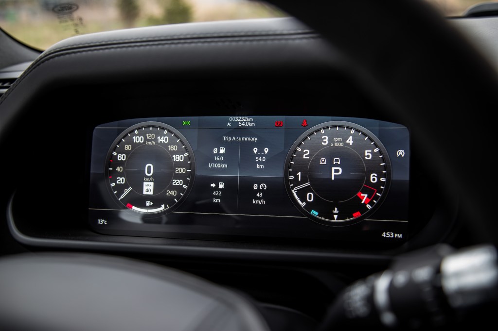 The 8-speed gearbox is a gem, rapid when needed, and seamless and polished when calmer driving is demanded. It demonstrates why this ZF-sourced transmission continues to the be the gold standard. We love the metallic paddle shifters flanking the wheel as well – they’re chunky, oddly heavy, but frankly feel more premium that those underpinning more expensive sports cars like the BMW M4 and Porsche 911. A warning light did come on after some hard acceleration pulls, citing a suspension fault and the air suspension wasn’t responding either, but cycling the ignition on and off, and leaving the Defender to sit for about fifteen minutes remedied that error. Possibly a sensor issue or electronic gremlin, as it never came up again.