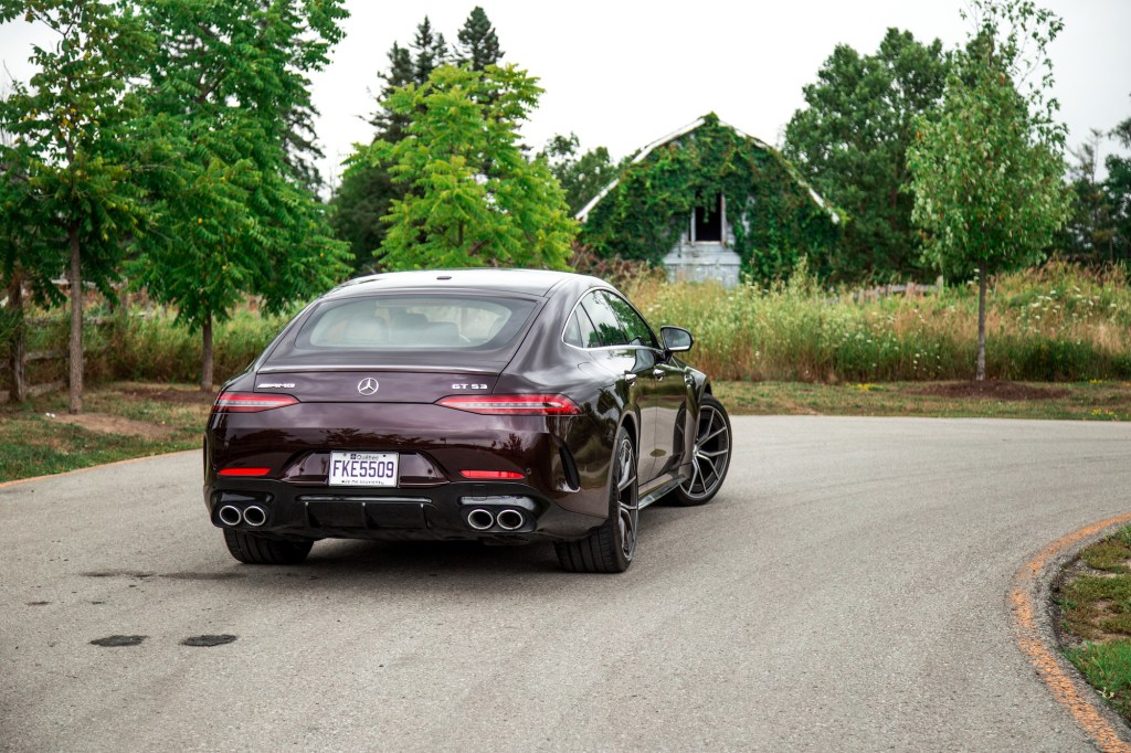 As predicted, the GT 53 accelerates with the same kind of thrust and kickback as the CLS 53, though the GT definitely feels more eager to turn and corner. It manages its weight better, and its lower center of gravity seems to render it more playful and agile when the road begins to snake, enjoying the hustle more than the CLS.