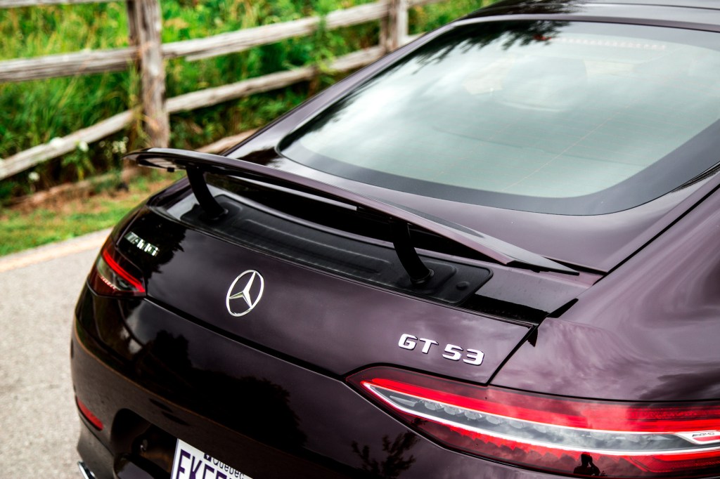 The 9-speed gearbox is more polished in the GT 53. It doesn’t lug around at low speeds or harshly vibrate between transitions in the clutch. This was one of our largest criticisms of the CLS. It’s a more cohesive experience as a result, demonstrated by its smoother behaviour at all speeds, and not just when driven hard. And even without the switchable active exhaust of the CLS, the GT 53 actually sounds the same, revving with a soft, high-pitched wail that begs you to downshift just to emit more sonically pleasing notes.