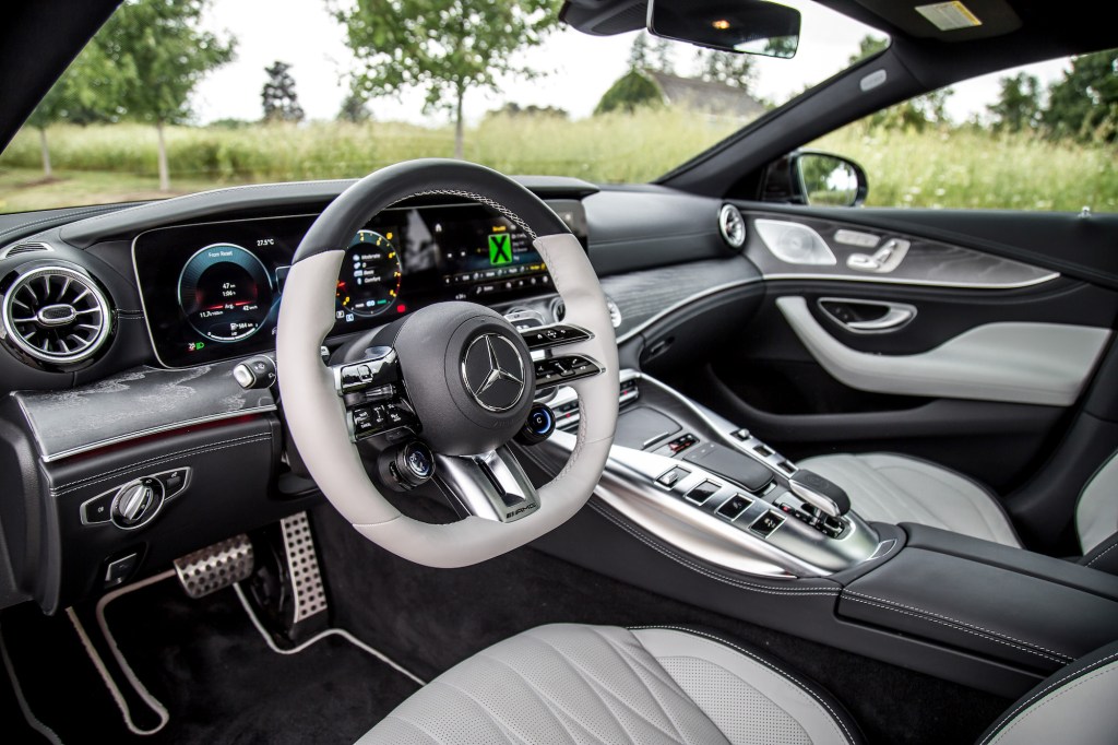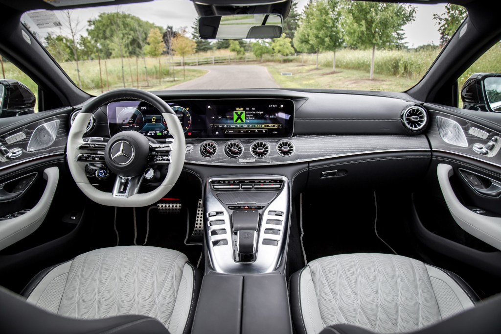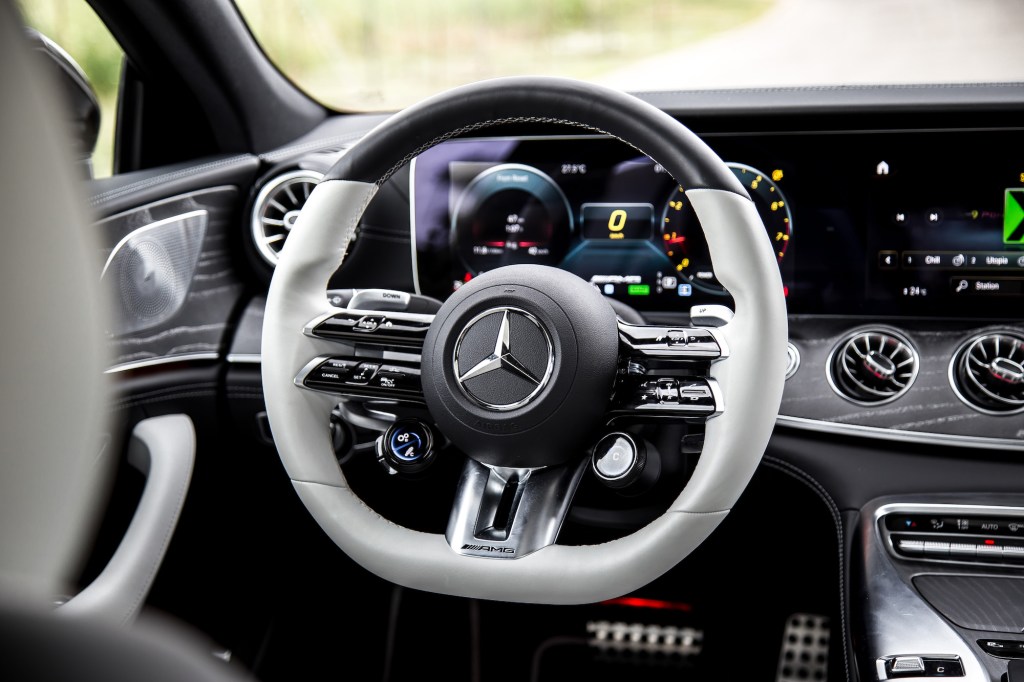 Up front, there’s a proper gear shifter and we prefer this over the plastic column-mounted stalk in the E and CLS. But many of the same traits and compromises remain, like the dinky sunroof that only covers the front cabin, though a panoramic one is optional. The rear seats are equally as cramped in both the GT and CLS, unworthy of even calling them rear accommodations when we have to hunch our six-foot frame under the headliner. The E 53 clearly wins in this area. The interior also seems to focus more on the IQ than the EQ, with a fussy touchscreen menu paired with a responsive trackpad but an interface that doesn’t seem well suited for it. The touch-sensitive row of menu buttons is also disastrously positioned right below the cupholders, so every time you reach for your items stowed there, your wrist will always trigger the panel, prompting the screen to confirm your new button press. Frustrating is an understatement.