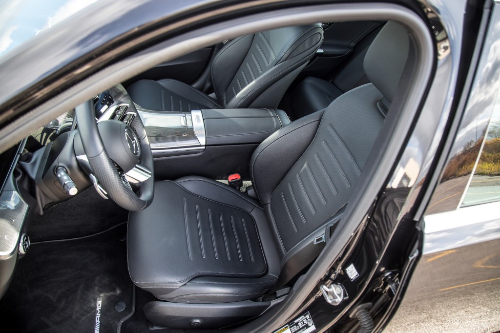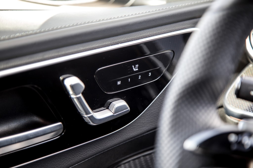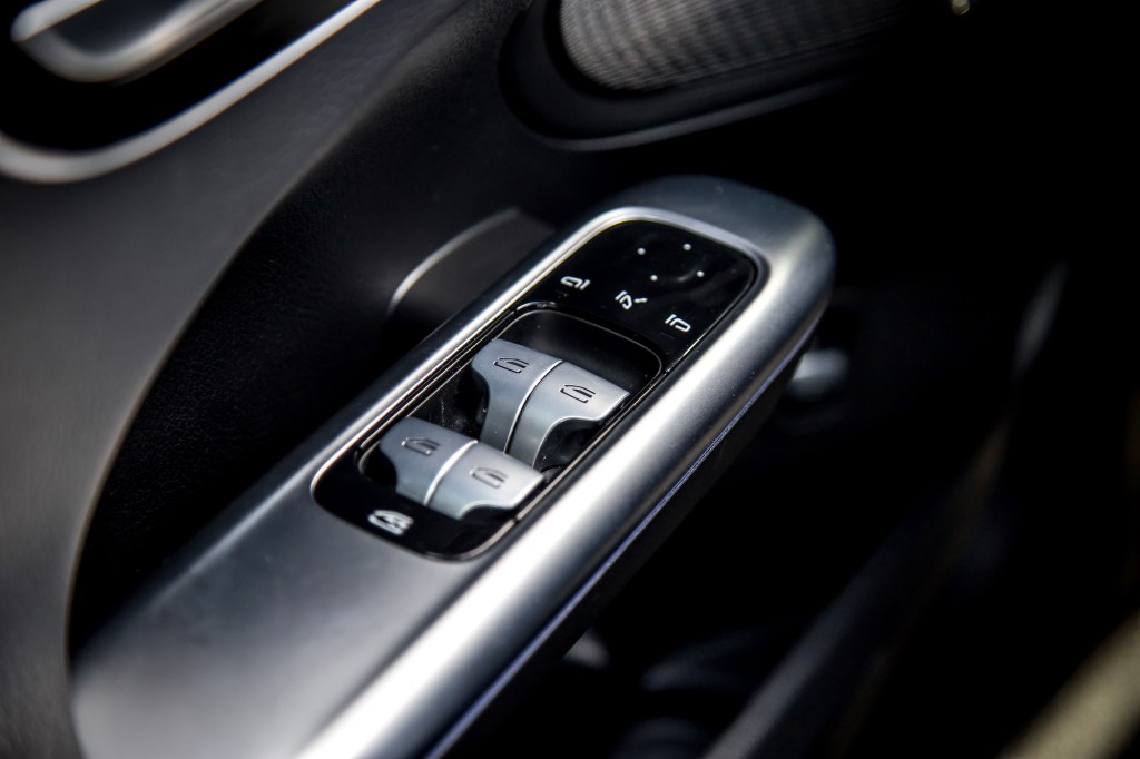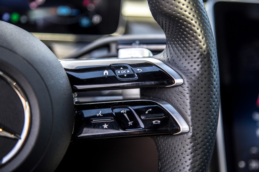 The steering wheel is pleasing to look at and interact with, housing haptic touch pads for all the buttons which work well but don’t feel as intuitive as real buttons, and we keep accidentally triggering them when driving quickly and rotating the wheel with vigour. And unfortunately, much of the criticism and drawbacks that we mentioned with the S-Class have also trickled down into here. The lack of grooves for these glossy black plastic button panels, like the memory seating, mean they are hard to press accurately, so we don’t know what we have pressed until it’s been activated. It’s a bit of a oversight as Mercedes generally nails down these ergonomic foibles. Still, the switchgear feels tremendously upscale and leather is excellent – nothing out of line with a halo product costing double.