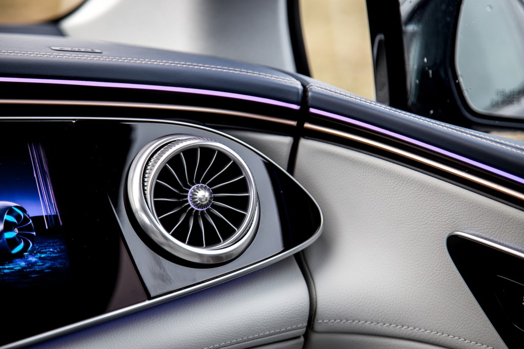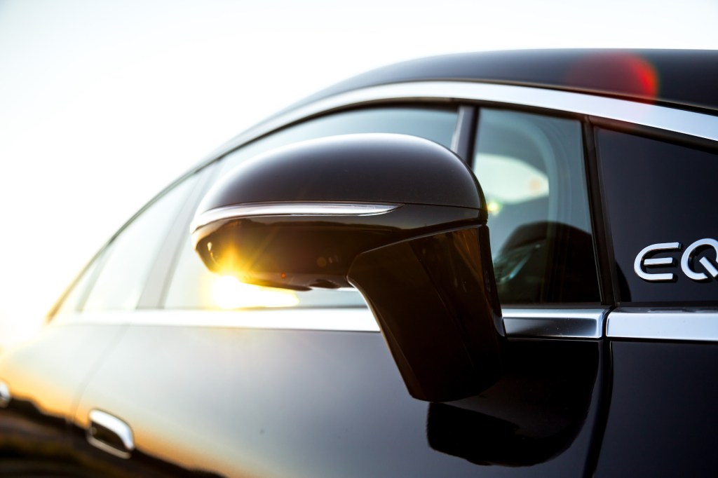 The EQS is efficient too and that all starts with that slippery soap-bar shape. Aerodynamics are the name of the game, but Mercedes never forgets to put on a show, which begins before you even enter the car. The EQS will sense when the key fob is close and as you approach, the LED headlights will glimmer and the flush door handles will pop out, greeting you with their presence.
