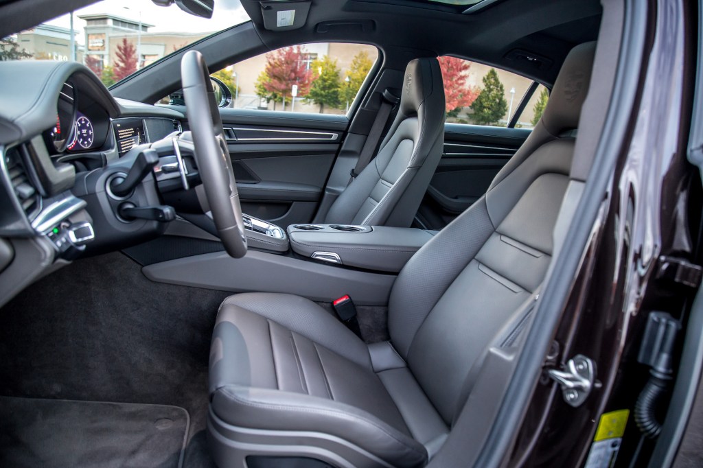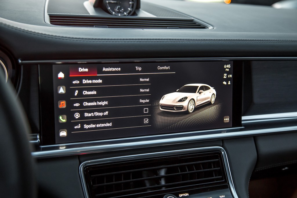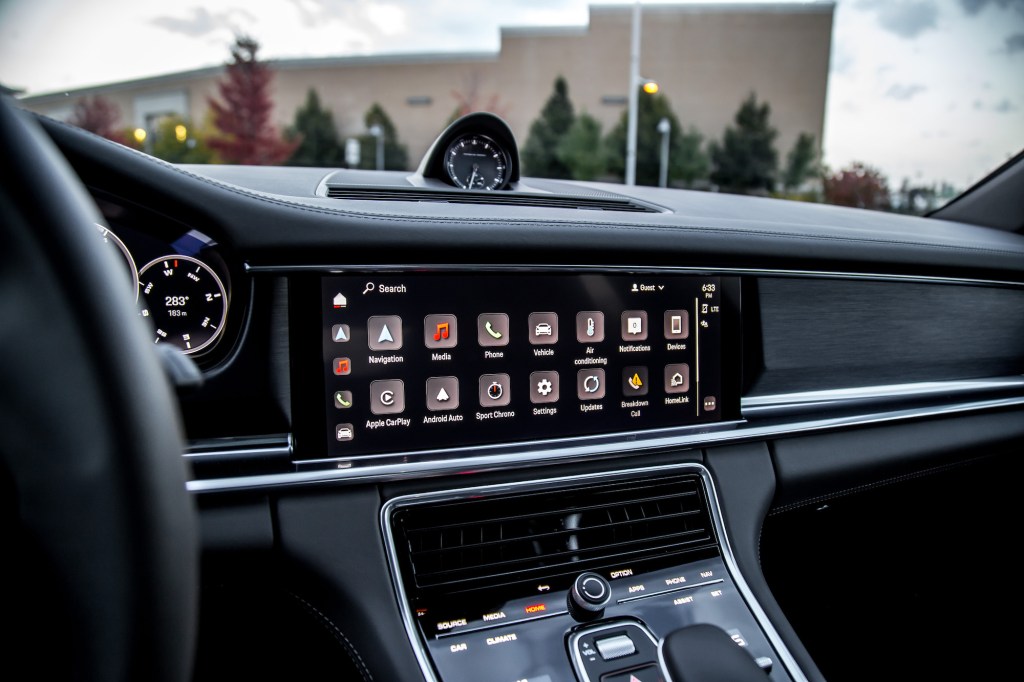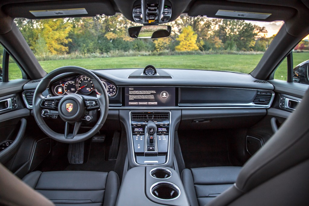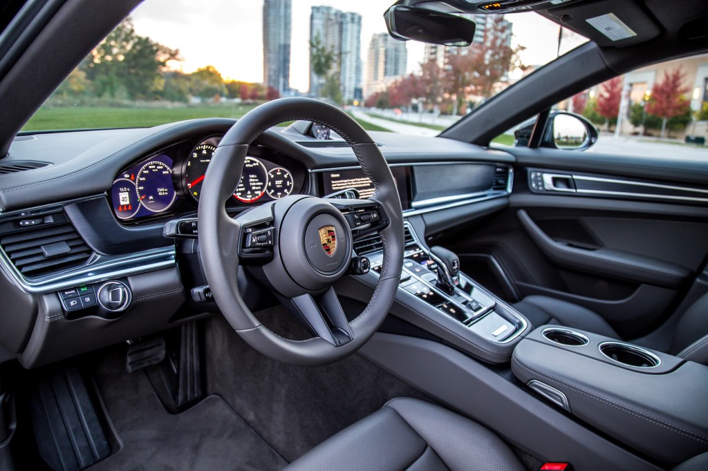Though there are V8s and hybrid powertrains in the stable, the Panamera 4 uses the base engine spec in the range, which is a 2.9-litre twin-turbocharged V6 delivering 325 hp and 331 lb-ft of torque through an 8-speed dual-clutch (PDK) transmission. 0-100 km/h comes in 5.3 seconds, or 5.1 seconds with the Sport Chrono package equipped. This all-wheel-driven Panamera 4 also shaves about three-tenths of a second over the non-4 rear-wheel drive model.