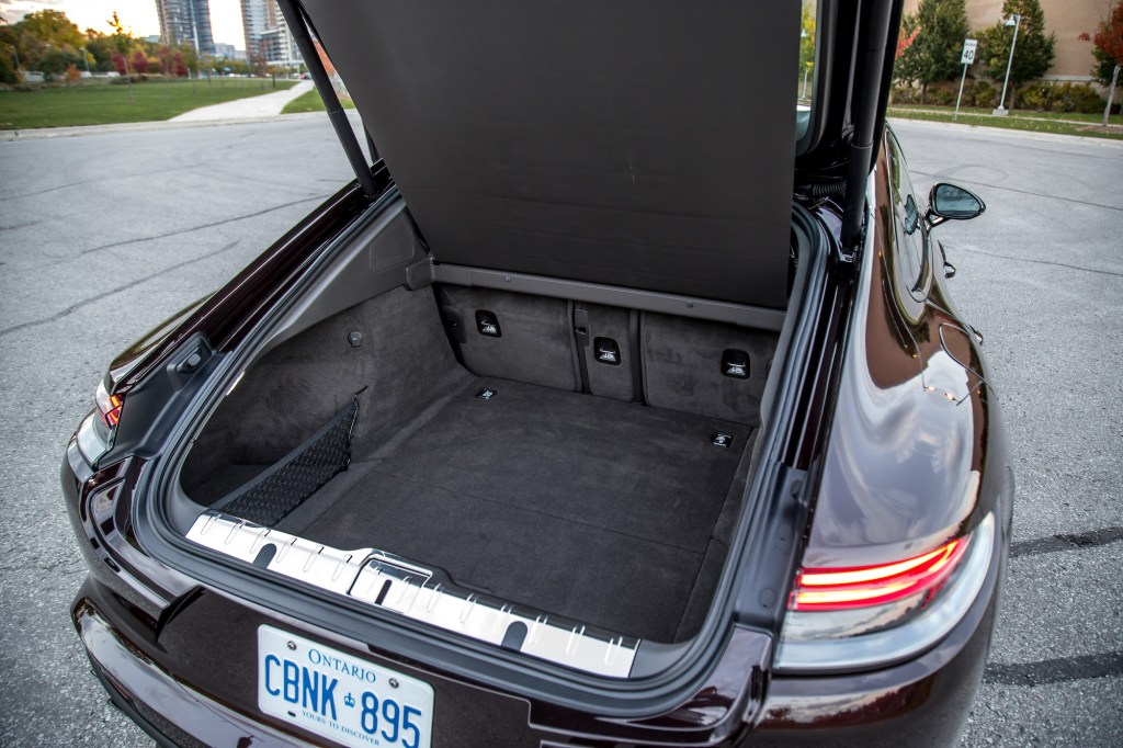 The Panamera’s sloping roofline may have you thinking its rear accommodations are sparse and cramped like the Audi A7 or BMW 8 Series but it’s actually quite generous. I can sit behind my six-foot self and still have enough legroom and headroom to wiggle about. The 2+1 configuration for the rear seats is a bit of a stretch, as the center tunnel is taken up by a control panel, meaning that middle-seat occupants will have to caress their neighbour’s knees, but it’s doable. There’s a separate sunroof for the rear cabin instead of a large panoramic one, but it still adds enough natural light to feel airy and spacious. Speaking of which, the trunk is large and the tailgate swings up like a hatchback – also handy that you can roll down the rear seats and have a spacious passthrough for taller items. The Sport Turismo wagon has always been our favourite body style for the Panamera but you really aren’t losing much storage with the sedan either.