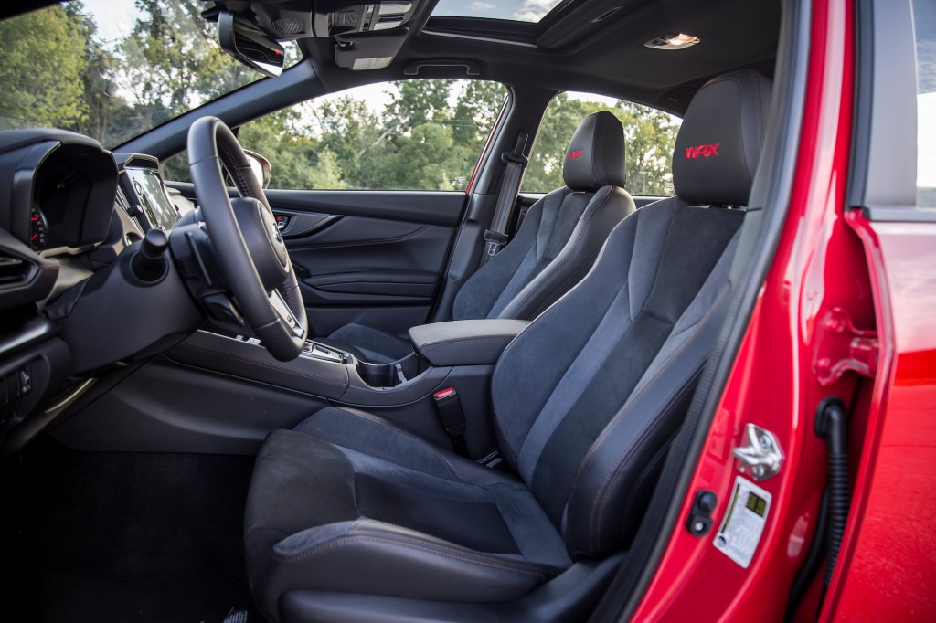 On the flip side, the WRX exhaust is booming and bass-filled as usual, even on engine start. It’s not a drone per say, but more like you’re towing a buzzing beehive. The noise isn’t terribly intrusive but can get tiring on longer road trips, where the constant bass reverberates every water bottle stowed in their holders. It sounds aggressive but not immature or overly boisterous. We noticed that the manual-equipped models sounded a bit louder, probably because we were revving them harder in lower gears. The CVT doesn’t take advantage of that, but what matters is that the turbo-four sounds exactly like a burbly WRX should.
