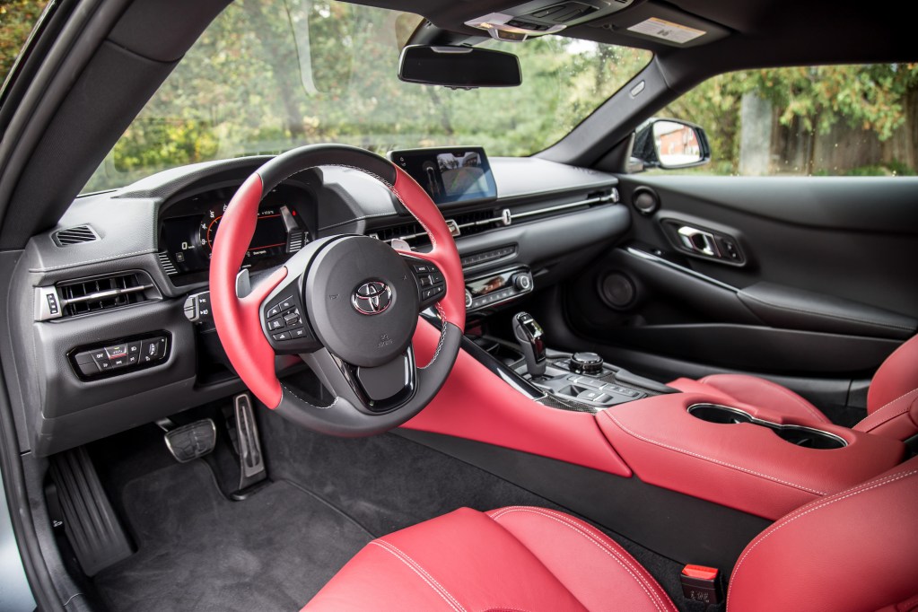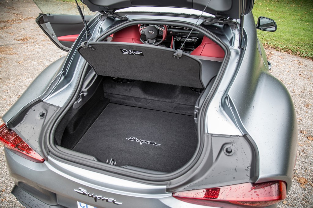 We still despise the odd, passenger-centric console design. Usually Toyota aces ergonomics but because they had to build on top of a foreign BMW platform, we think they forgot to flip the blueprints right-side up. They tried to make something different but it doesn’t work. There’s a large wall divide that blocks the driver from reaching into the center stack, making it tricky to access the storage cubby, and exacerbates the cabin’s cramped dimensions. And as expected from a coupe, storage options are limited with two cupholders, a small rectangular cubby behind them, a phone holder above, and tiny door pockets. Though, passengers do have access to the pass-through hatchback-like trunk, so longer items can seep right through the center. Speaking of the trunk, it’s actually quite large and is deep enough to fit large suitcases and travel paraphernalia.