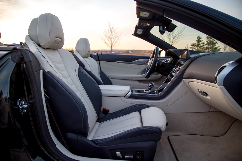 The soft-top roof only takes 15 seconds to be raised or lowered, and can be done at speeds up to 50 km/h. The fabric layer does a great job insulating the cabin from unwanted exterior noises as well, and while it’s not as quiet as the coupe, you can still have whisper quiet conversations at highway speeds. Furthermore, with all-wheel drive, three-stage neck warmers, and manually attached air deflectors, the M850i eagerly extends your convertible season into late autumn.
