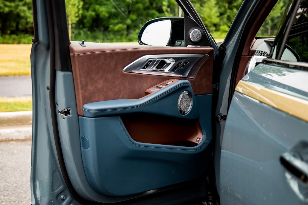Does it look expensive? Absolutely, but it’s far from a timeless design. The looks are slowly growing on us though, and we might just look back in five years thinking ‘Wow, BMW was really ahead of its time’. Or maybe not. However, what we can agree on is how beautifully specified this XM is, gift-wrapped in golden accents, featuring gargantuan 23-inch wheels, and a layer of Cape York Green paint that comes off as a teal-ish bergamot hue with hints of green and yellow.