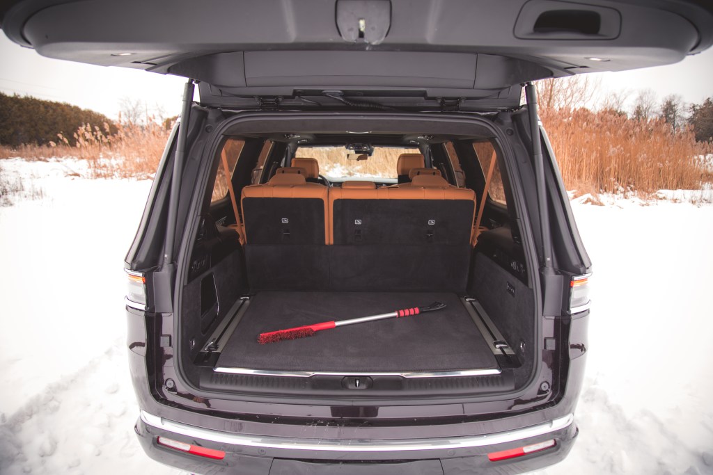 The Grand Wagoneer now comes loaded with a 3.0-litre twin-turbocharged inline-six producing 510 horsepower and 500 lb-ft of torque through an 8-speed automatic. Base models still receive the naturally aspirated 6.4-litre V8, but note that despite its larger displacement and cylinder count, the unit only musters 471 hp and 455 lb-ft of torque, yielding a paltry fuel average of 18.0 L/100km. We achieved a steady 16.2 L/100 km with this new unit, which Jeep dubs the Hurricane engine. We love it when automakers give their power plants a cool name – think Ford Voodoo or Buick Fireball.