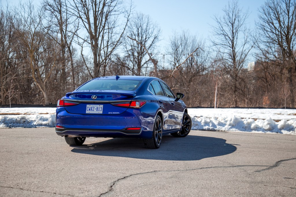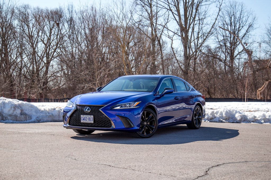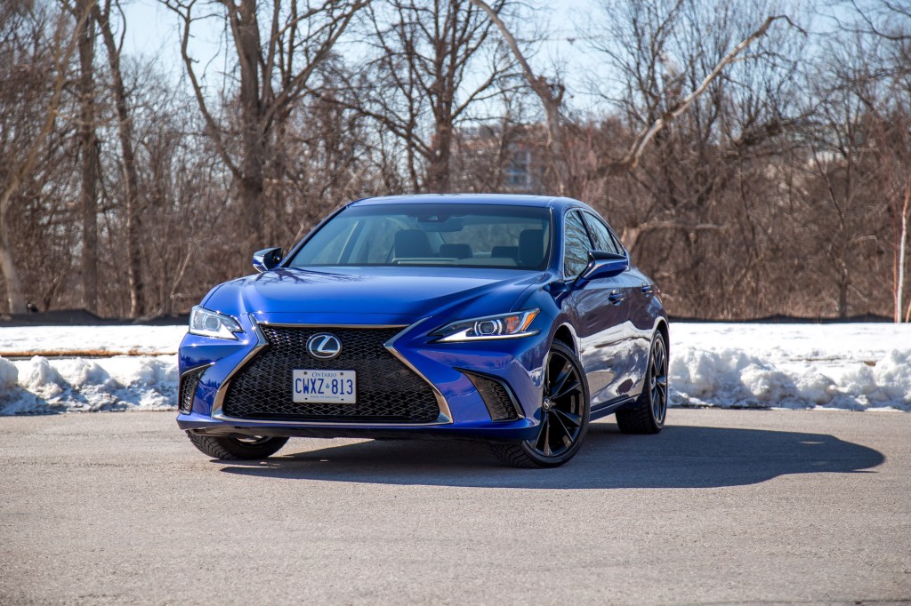 The ES 300h ($52,600) has been a staple of the brand’s hybrid lineup and new for 2023 is an F Sport Design trim, which for $1,850 adds 19-inch wheels, wireless charging, a heated steering wheel, Apple CarPlay and Android Auto compatibility, power tilt and telescoping steering wheel column, wood door trims, and wood-accented wheels, amongst other features. It sits under the more premium grades such as F Sport 2 ($6,500), Luxury ($6,650), and Ultra Luxury ($10,600). But optioned in Ultrasonic Blue Mica with blacked-out wheels, it’s easily one of the sportiest, eye-catching, and youthful Lexus products on the market.