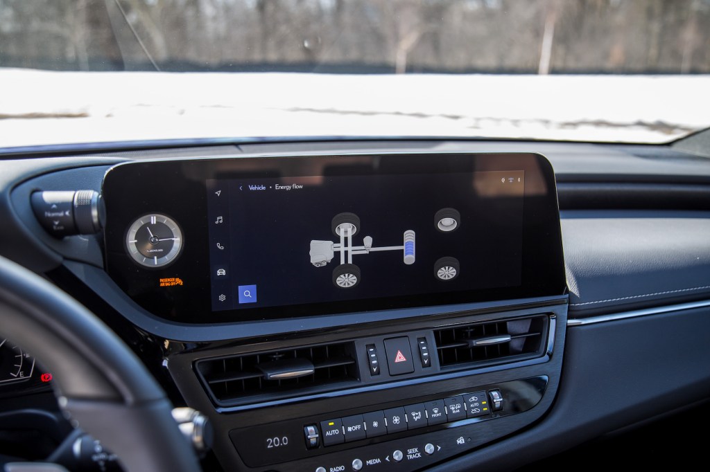 The ES 300h is equipped with a 2.5-litre naturally aspirated four-cylinder engine paired with an electric motor and battery. It produces 215 combined horsepower with the help of a continuously variable transmission (CVT) and front-wheel drive – a similar spec to the Toyota RAV4 Hybrid. Of note, there are no turbochargers or all-wheel drive here but in the name of efficiency, we don’t think this hybrid needs it.