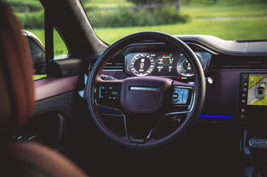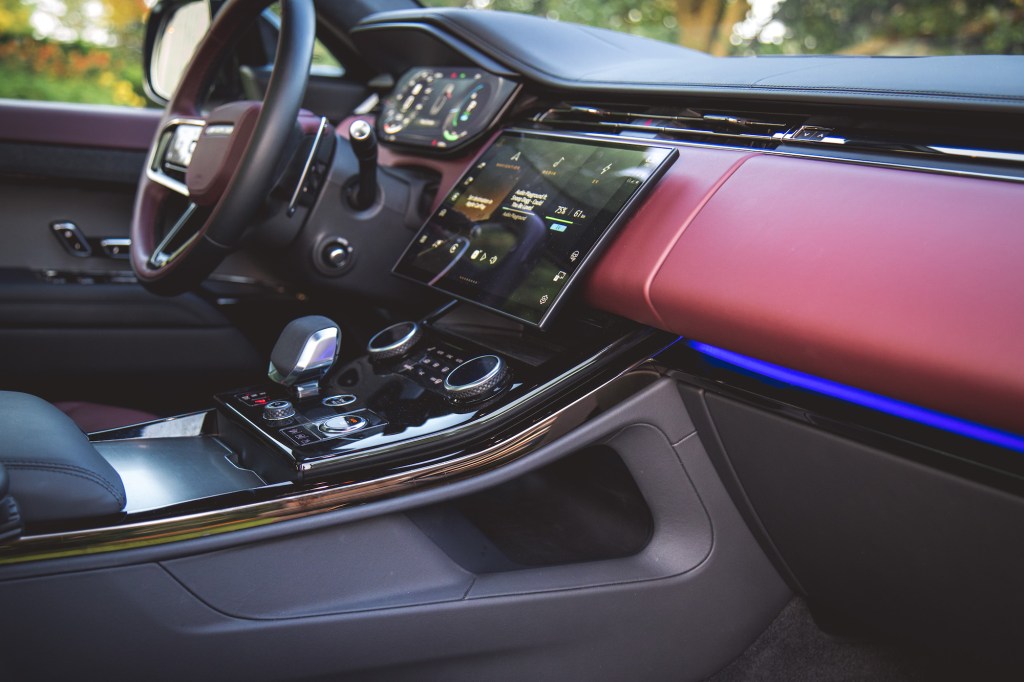 The cabin is essentially a shrunken-down Range Rover, the only real differences being the center console and steering wheel – unsurprising as they share the same vehicle width and wheelbase dimensions. The design and upholstery in this cabin are impeccable, with buttery semi-aniline leather covering the majority of surfaces. Complementing it is a large 13.1-inch curved center screen and a 13.7-inch digital instrument cluster.