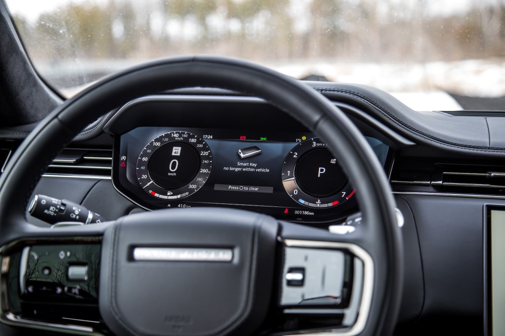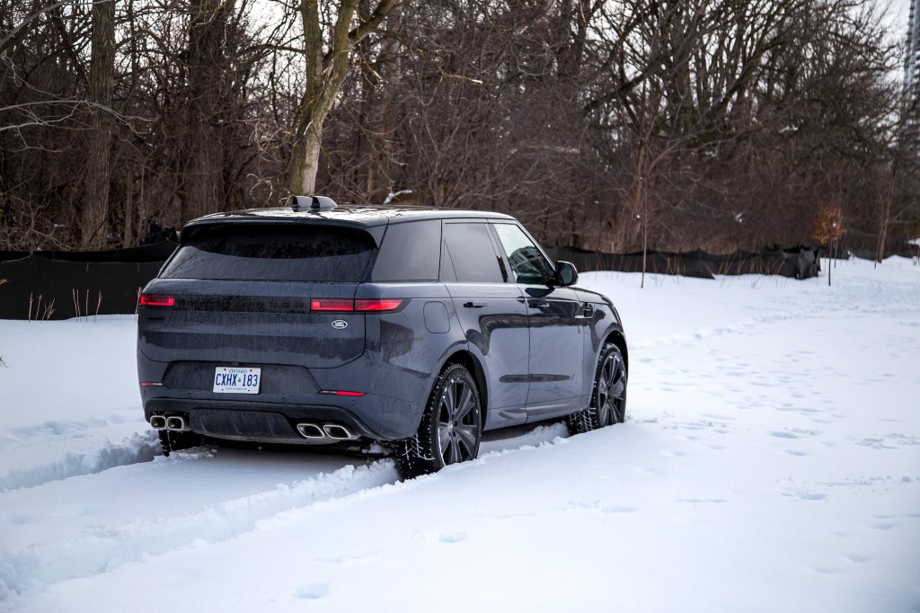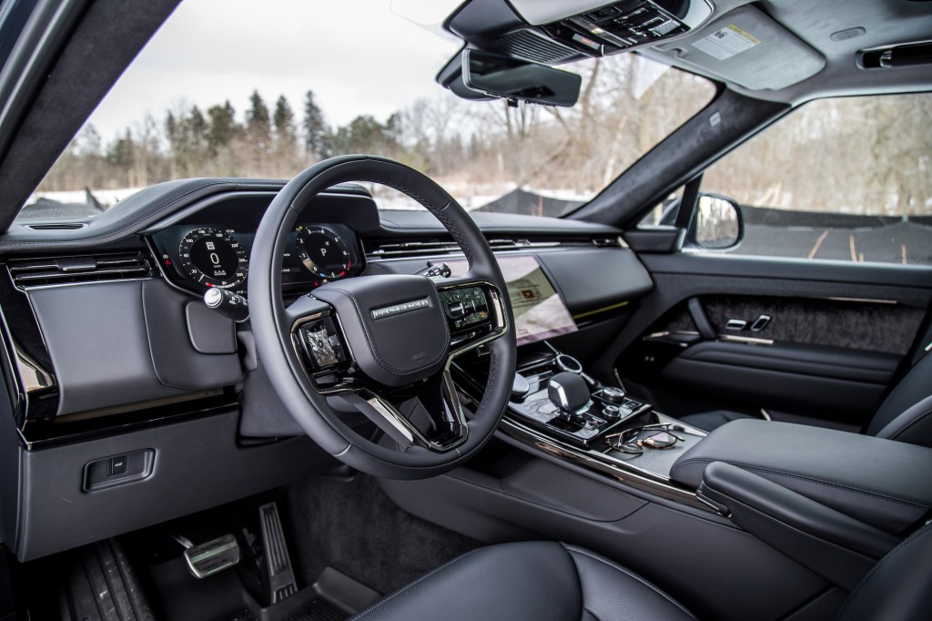 This 4.4-litre twin-turbocharged V8 is a peach of an engine. Borrowed from BMW but tuned in-house at Land Rover, this P530 spec delivers 523 hp and 553 lb-ft of torque through an 8-speed automatic and will reach 0-100 km/h in a speedy 4.5 seconds, the same as a Porsche Cayenne Coupe GTS and the outgoing Range Rover Sport SVR. Acceleration is unexpectedly strong, dragging the SUV through the air as if it weighs nothing, and the exhaust noise is distinct from BMWs as well – mellower, not as raspy, and more mature and professional sounding, yet no less sonically exciting, especially on cold starts.