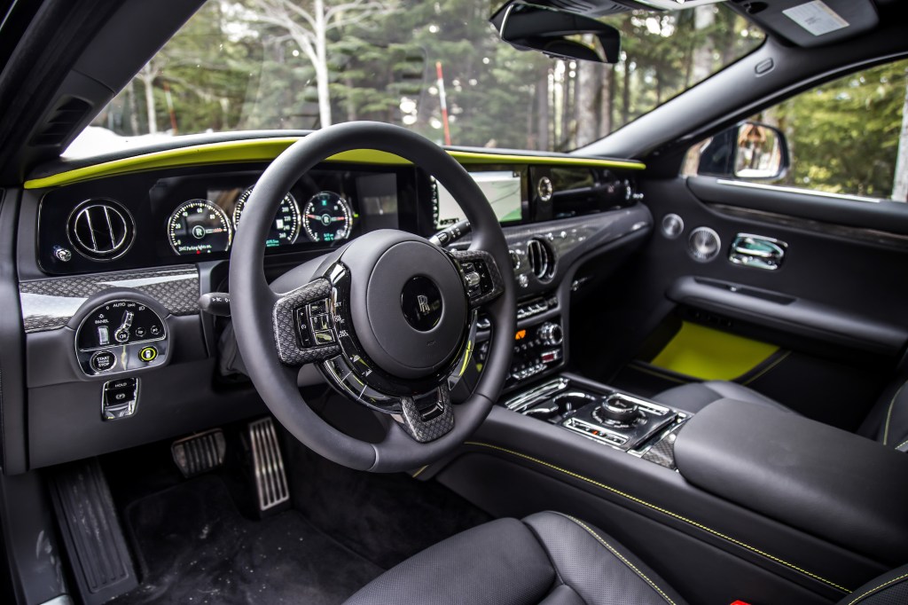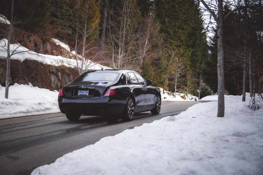 After a back-to-back drive of the standard Ghost and the Ghost Black Badge, we immediately noticed less body roll around the long sweeping twists and turns of the Sea-to-Sky Highway. The ride gains in fluency the faster you go, staying level and grounded with the help of an adaptive air suspension, all-wheel drive, and rear-wheel steering. The latter also drastically decreases its turning radius, allowing it to be hustled around tight parking spaces with the agility of a BMW 3 Series. The steering is light enough to rotate this 2,490 kg land yacht with just one finger, and road undulations are muted into mild shudders that occupants will barely register. It’s like a road-legal Shinkansen.