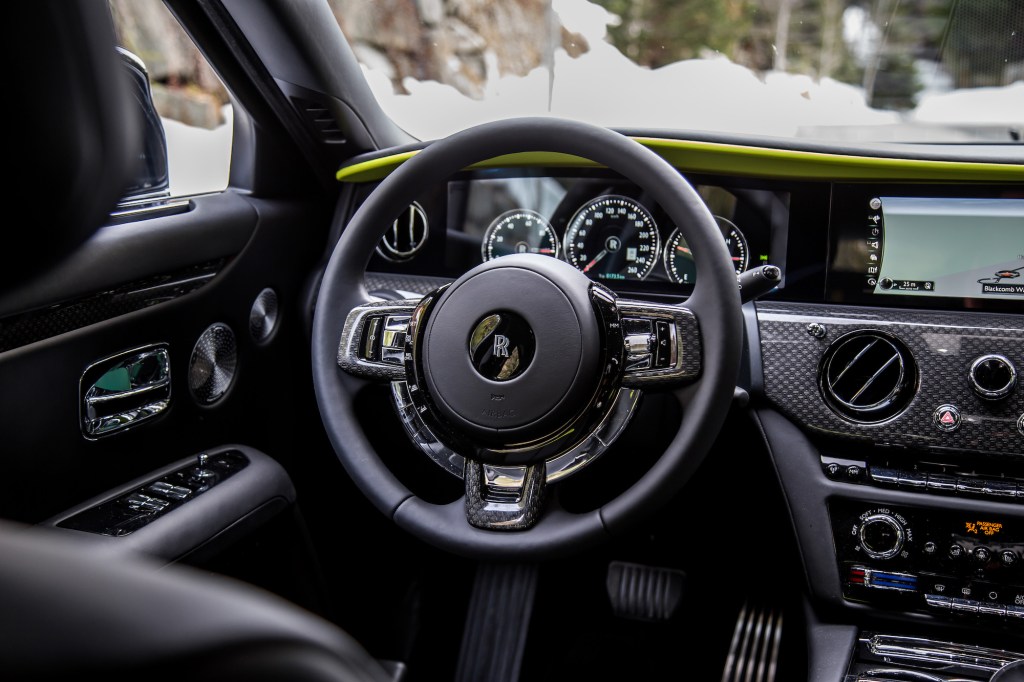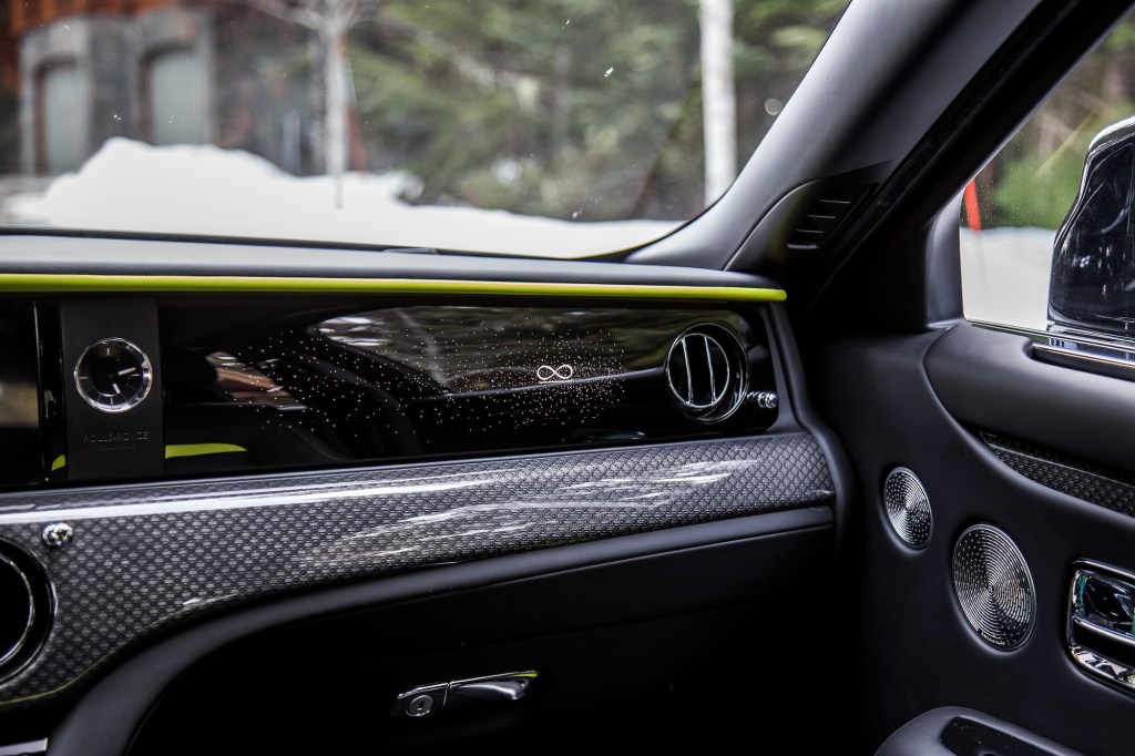 And it’s not just 45 kg of black paint that makes the Black Badge unique, or the black finishes on the chrome and Spirit of Ecstacy hood ornament, or the 44-layer carbon fibre 21-inch wheels. The interior features unique elements that you can’t find in a regular Ghost, such as Technical Fibre accents that can be applied to the steering wheel, dashboard, and center console elements. Resin-coated carbon is woven with metal-coated thread in a diamond pattern to create a three-dimensional effect more distinctive than standard carbon fibre.