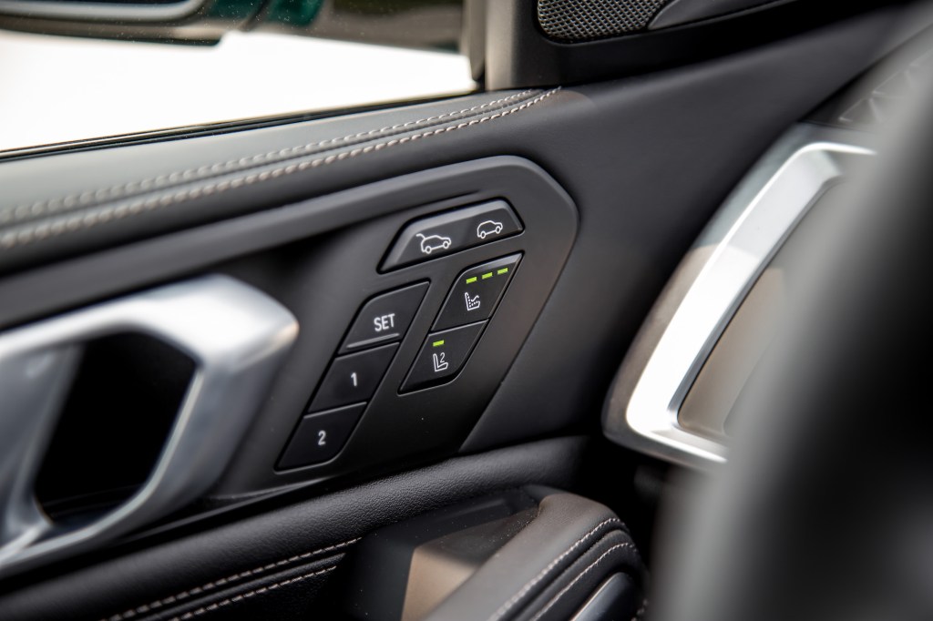 The driving position in the X6 is spot on – a high-up yet hunkered seat that makes you feel like you are the king of the road, though we always seem to find that BMW steering wheel columns don’t tilt down far enough, with the wheel always angled too acutely towards the headliner. That means we can’t sit very low or far back like in a sports sedan. We adore the thick leather wrap around the wheel, though, and even the airbag cover is stitched leather and not that plastic nonsense that Mercedes still offers at this price point. It’s odd that BMW also removed the heated steering wheel button, which was previously located on the lower spoke. It was convenient, but it actually looked out of place.