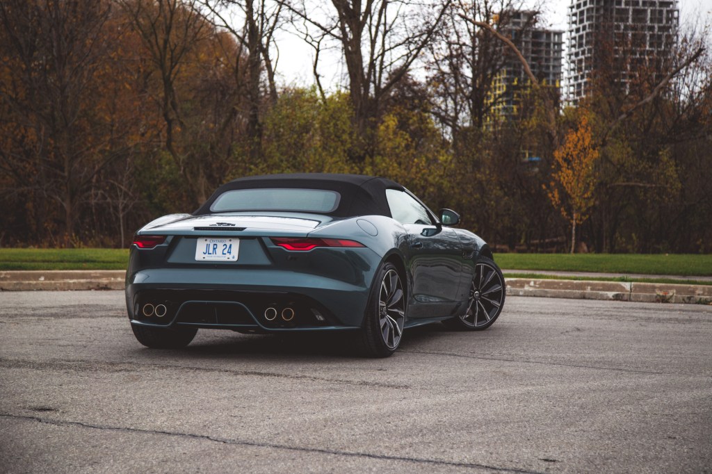 The R75 adds standard 20-inch wheels, achromatic shades for all the badges and scripts, and this exclusive Giola Green paint on our test vehicle. The rest of the F-Type remains mechanically identical underneath that dark teal shade, including brake-based torque vectoring and an electronic rear differential. So there isn’t much substance to warrant upgrading from a previous F-Type model, but it’s standard play for a vehicle reaching the end of its tenure: whip out a special edition that banks on nostalgia, add a few unique paint colours and trim pieces, and keep the price tag and residuals high. Subaru, Toyota, and Jeep are masters of this trade.